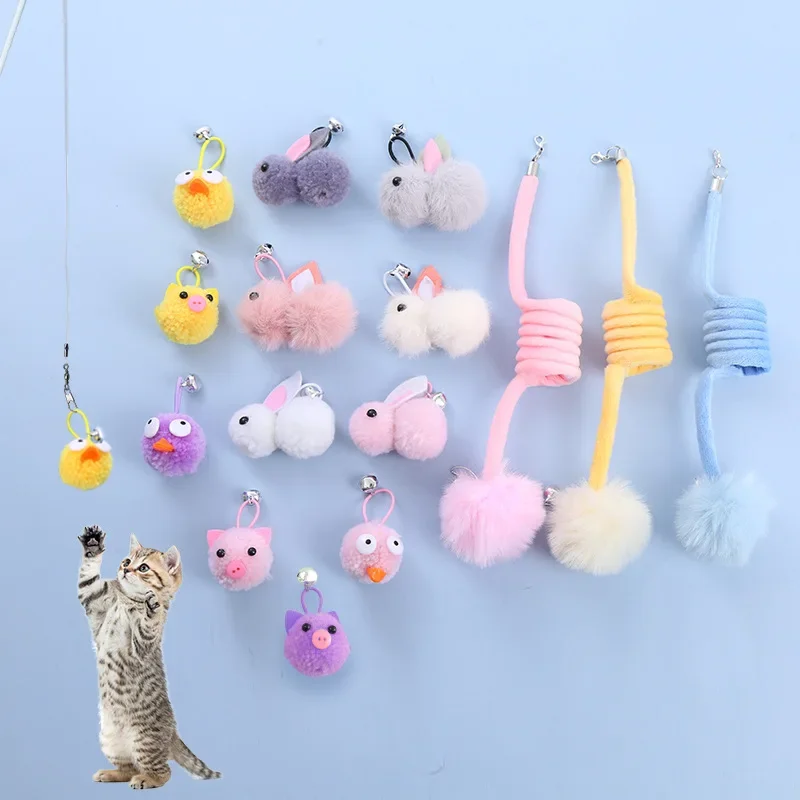Suministros para mascotas, cabeza de repuesto, juguete para gatos, peluche colorido con campana, palo de burla, juguetes para gatos, productos interactivos para mascotas