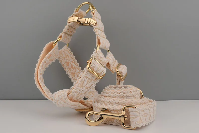Ropa de boda para mascotas, suministros para mascotas, ID de perro, logotipo grabado gratuito para perros pequeños, medianos y grandes, arnés de encaje americano Cocker Spaniel