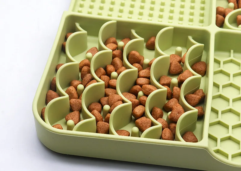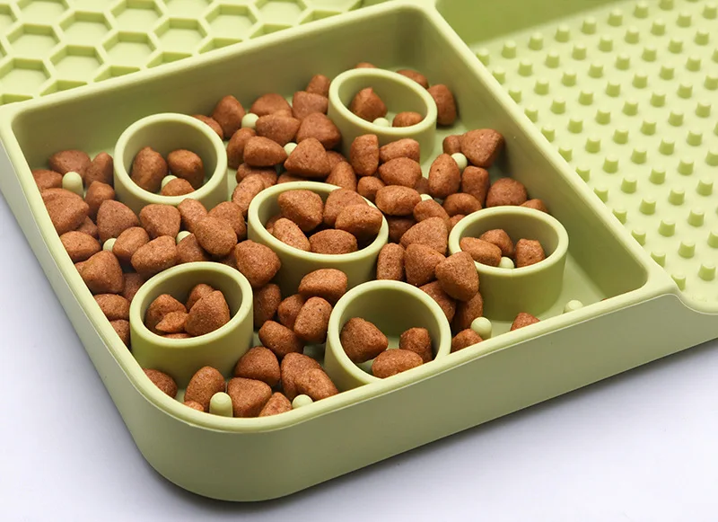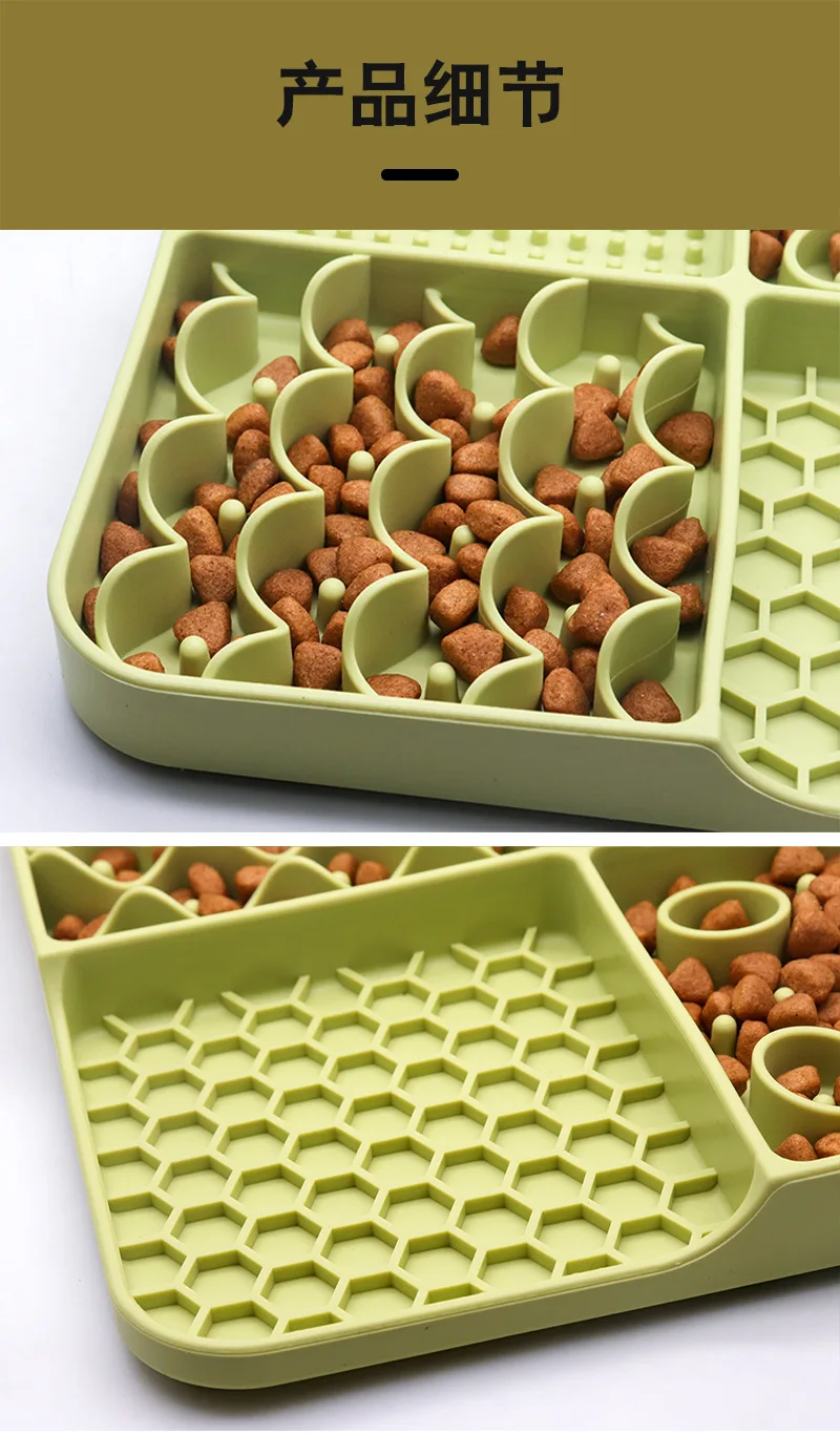 【Diseño de textura y comedero lento】 Se utilizan varios diseños de superficies con diferentes texturas para contener alimentos que se pueden esparcir, como comida húmeda para perros, mantequilla de maní o calabaza.Dos ranuras diferentes están diseñadas para bocadillos para perros no molerables, como nueces.Esta almohadilla para lamer es perfecta para prolongar el tiempo de alimentación y ayudar a que perros o gatos digieran.
