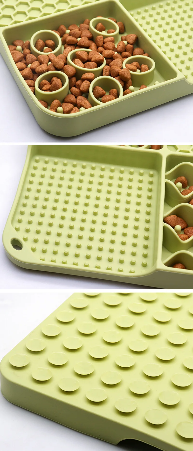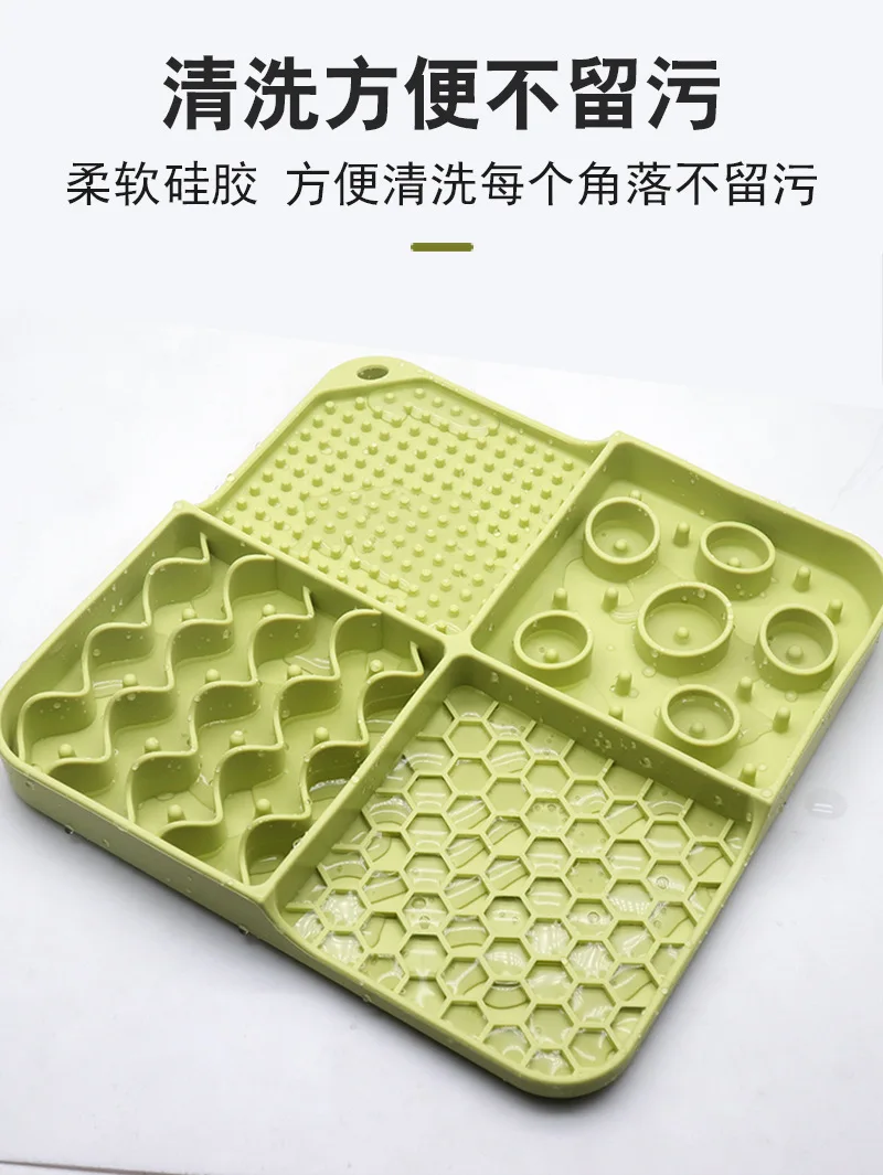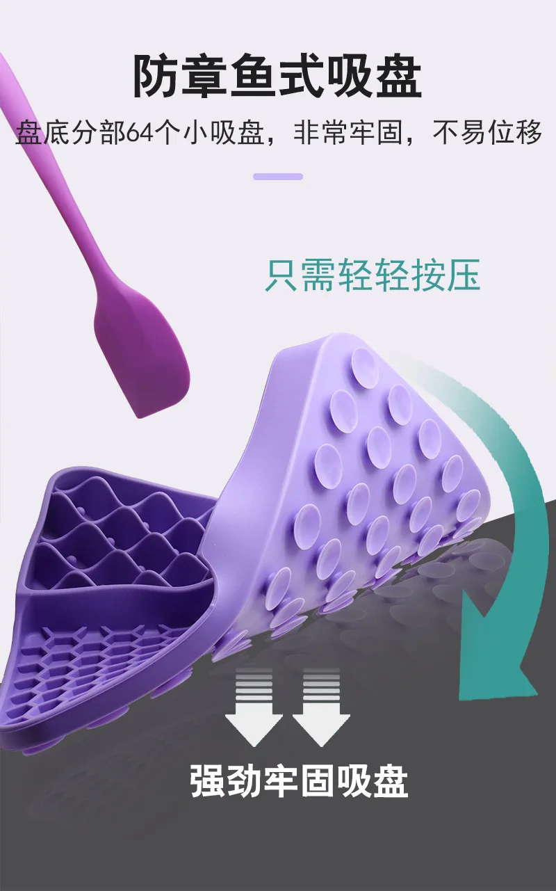[Ayuda a entrenar a las mascotas] Las almohadillas para lamer pueden ayudar a eliminar varios estímulos para las mascotas en nuevos entornos y relajarse en lugares públicos.Las almohadillas para lamer pueden ayudar a cambiar gradualmente la respuesta emocional de las mascotas, como el ruido del tráfico, el personal de parto, las visitas veterinarias, la hora del baño, el cortaúñas, la recuperación de lesiones, las tormentas eléctricas, los fuegos artificiales y otros perros.