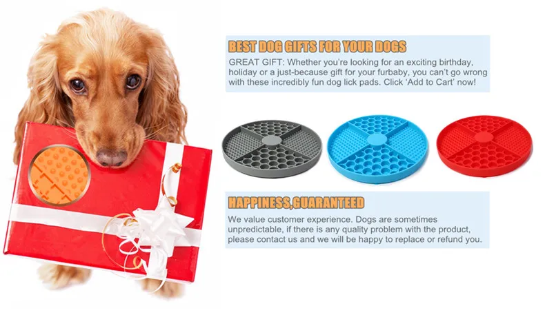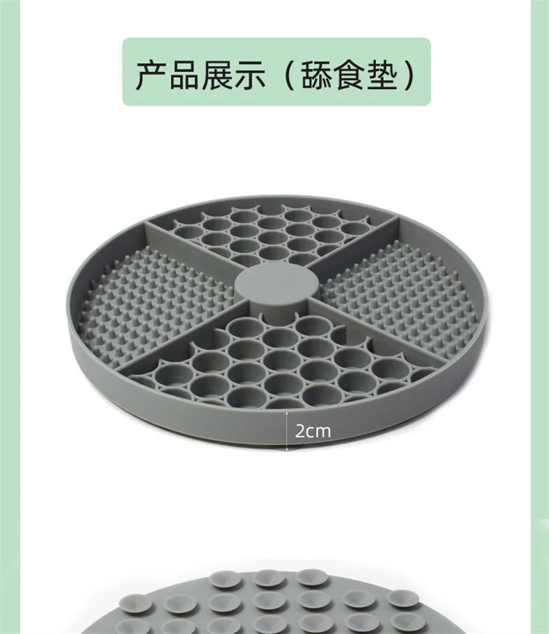 [Ayuda a entrenar a las mascotas] Las almohadillas para lamer pueden ayudar a eliminar varios estímulos para las mascotas en nuevos entornos y relajarse en lugares públicos.Las almohadillas para lamer pueden ayudar a cambiar gradualmente la respuesta emocional de las mascotas, como el ruido del tráfico, el personal de parto, las visitas veterinarias, la hora del baño, el cortaúñas, la recuperación de lesiones, las tormentas eléctricas, los fuegos artificiales y otros perros.