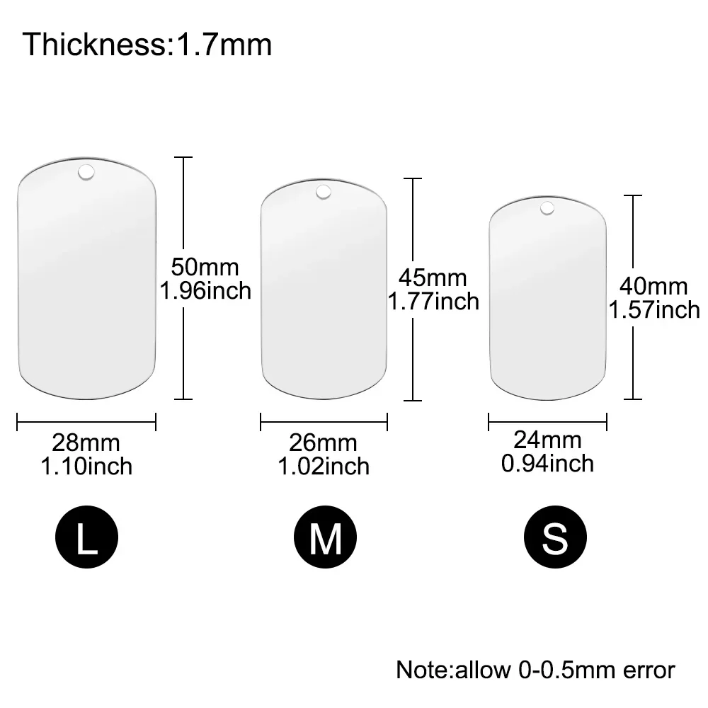 Type: Dog ID Tag Material: Stainless Steel Pattern: Military Tag Size:S,M,L Feature : Personalized and customerized, You can engrave your pet's name or your phone number on the tags. MOQ : 1PC/lot
