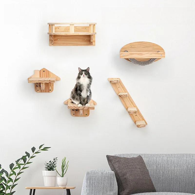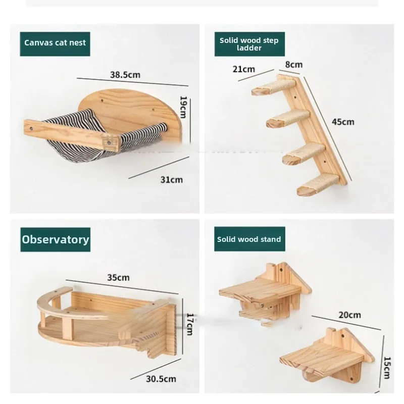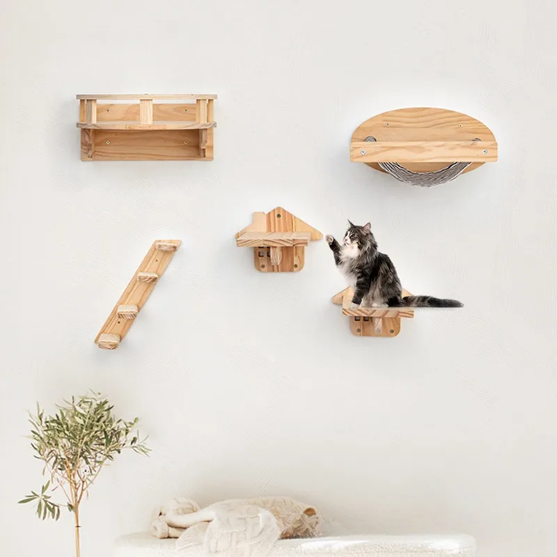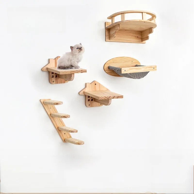 Suministros para mascotas de madera montados en la pared para gatos, juguetes creativos, marco de escalada de madera para gatos, muebles de pared para dormir y descansar