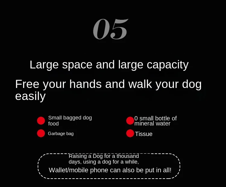 [Esposos de gran capacidad] El paquete para perros de dos caras proporciona suficiente espacio para que lo esencial pueda llevar el soporte para comida para perros, agua, refrigerios, bolsas para triturar residuos, etc.