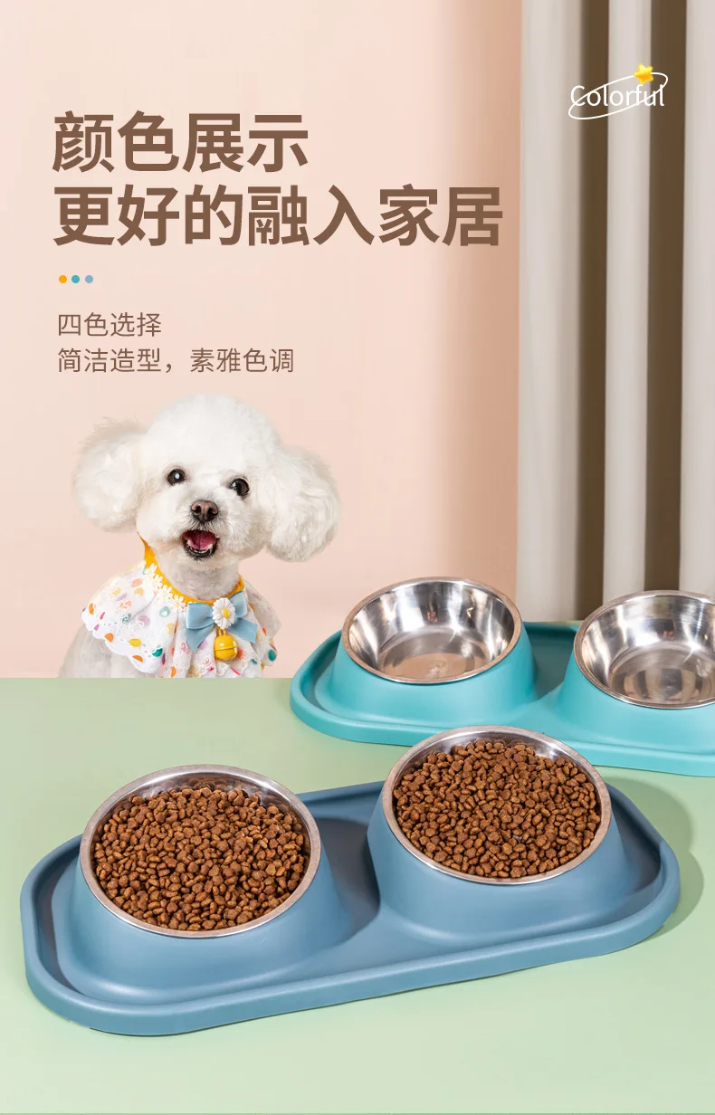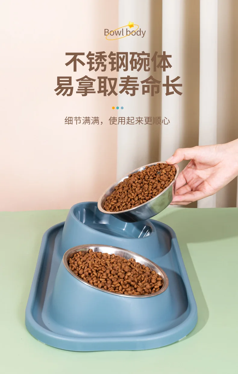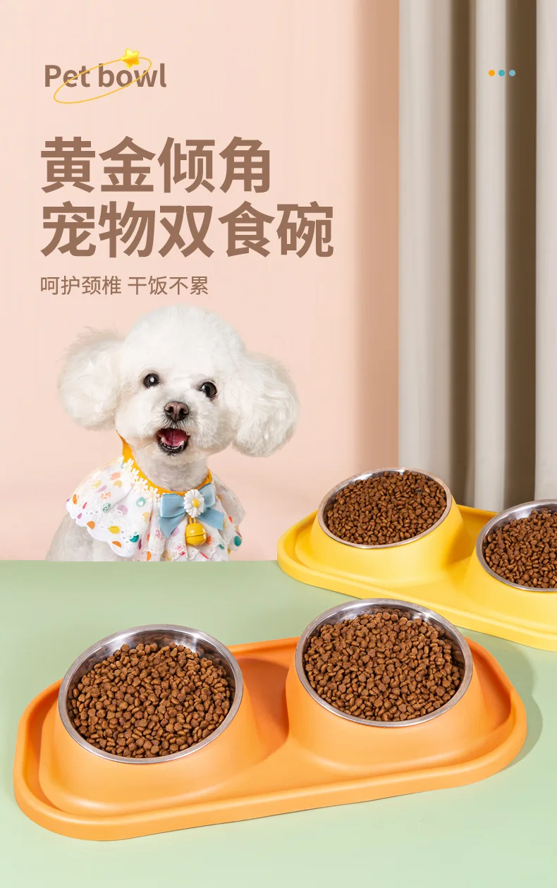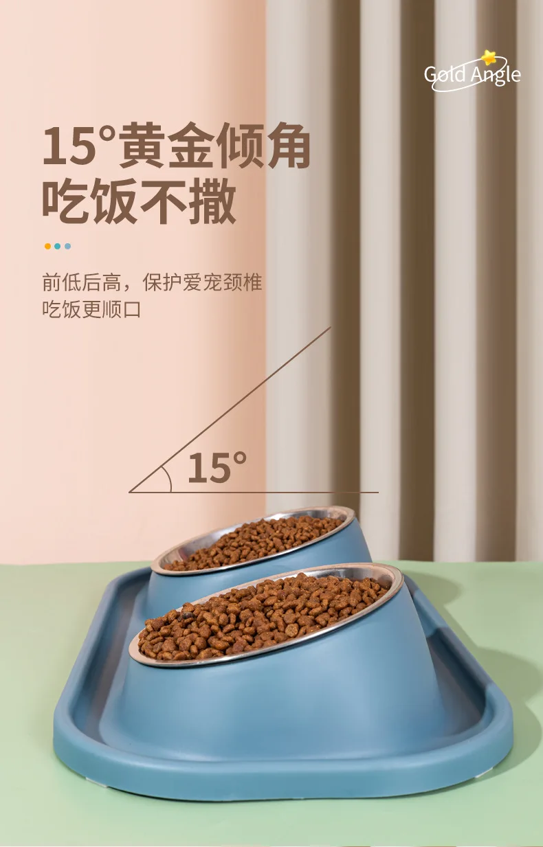 Suministros para mascotas, olla para perros, cuenco para gatos, protección del cuello, comida lenta, plato antiasfixia, antigolpes sobre doble cuenco Diagonal