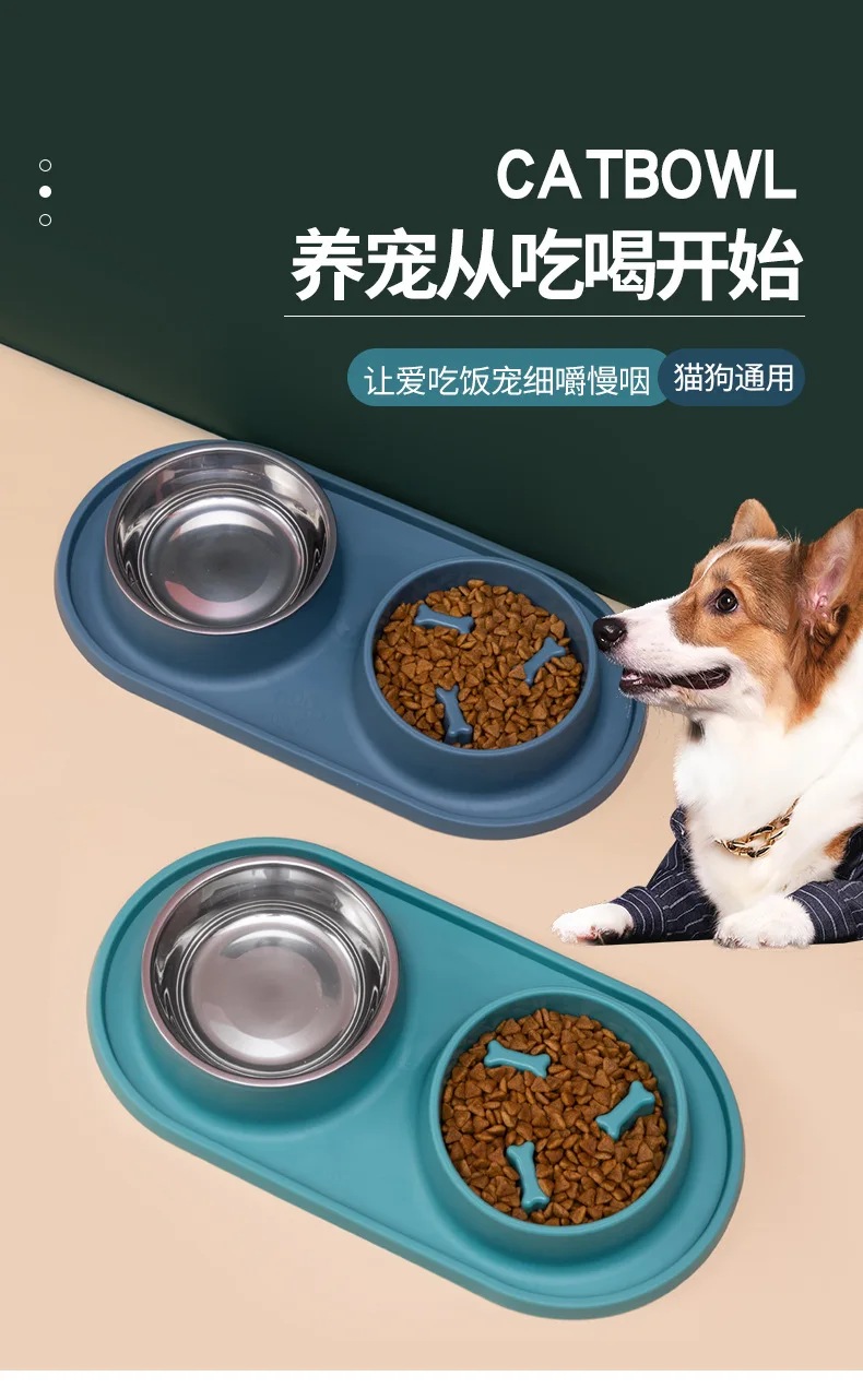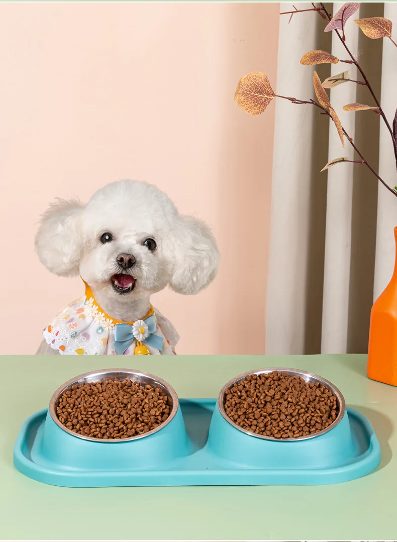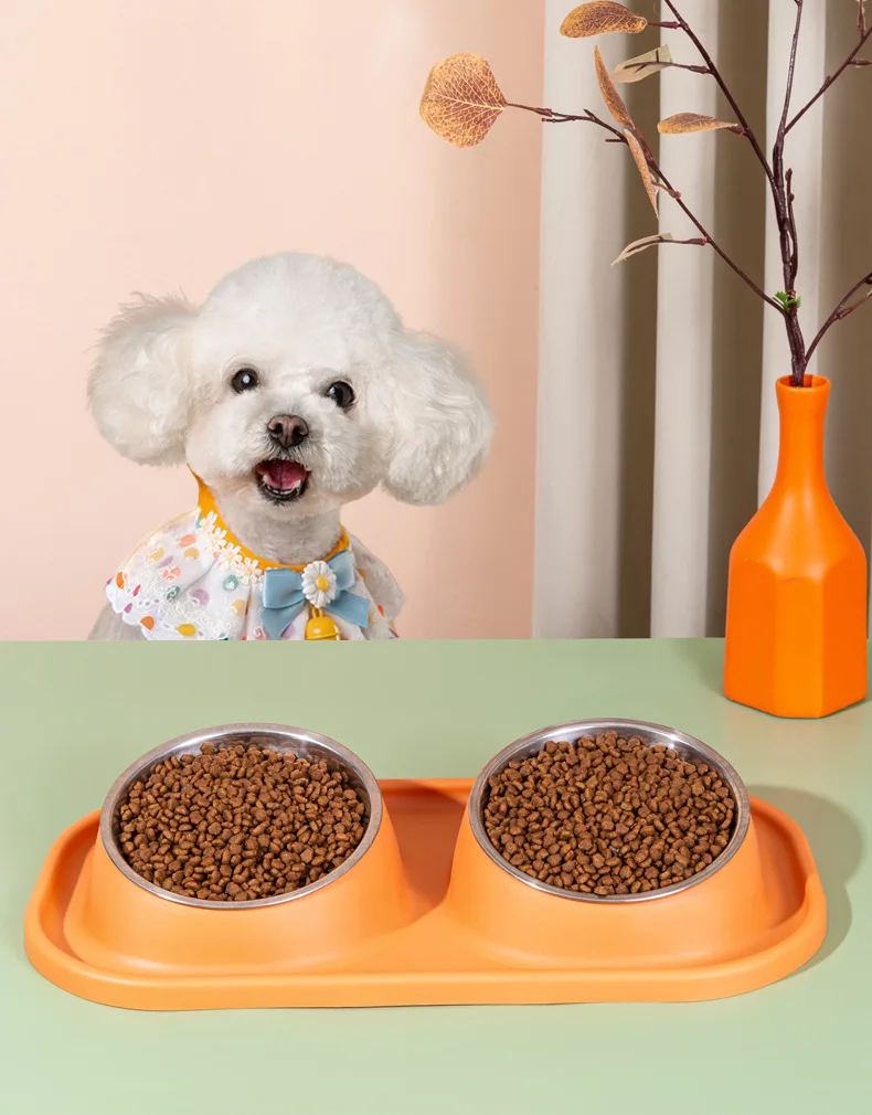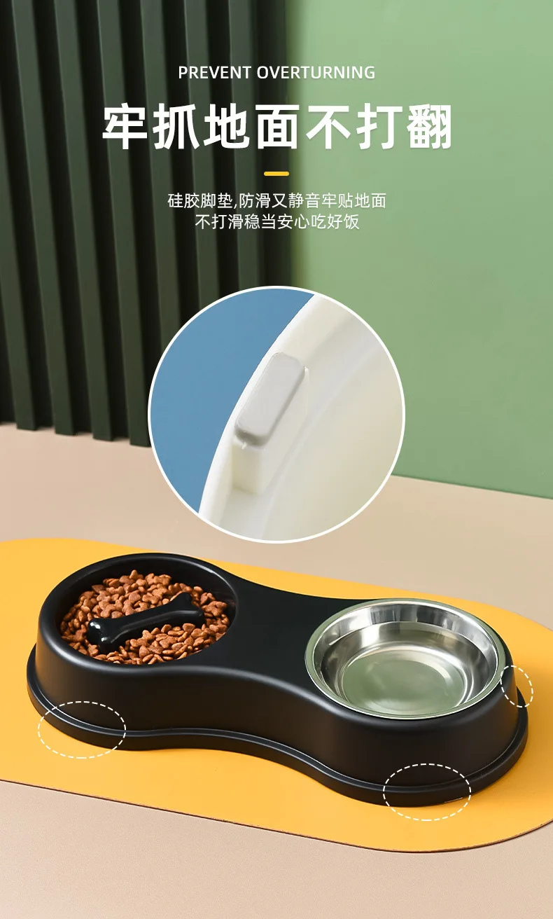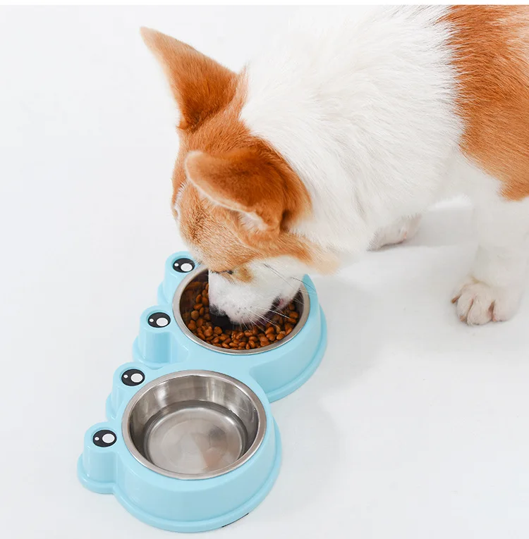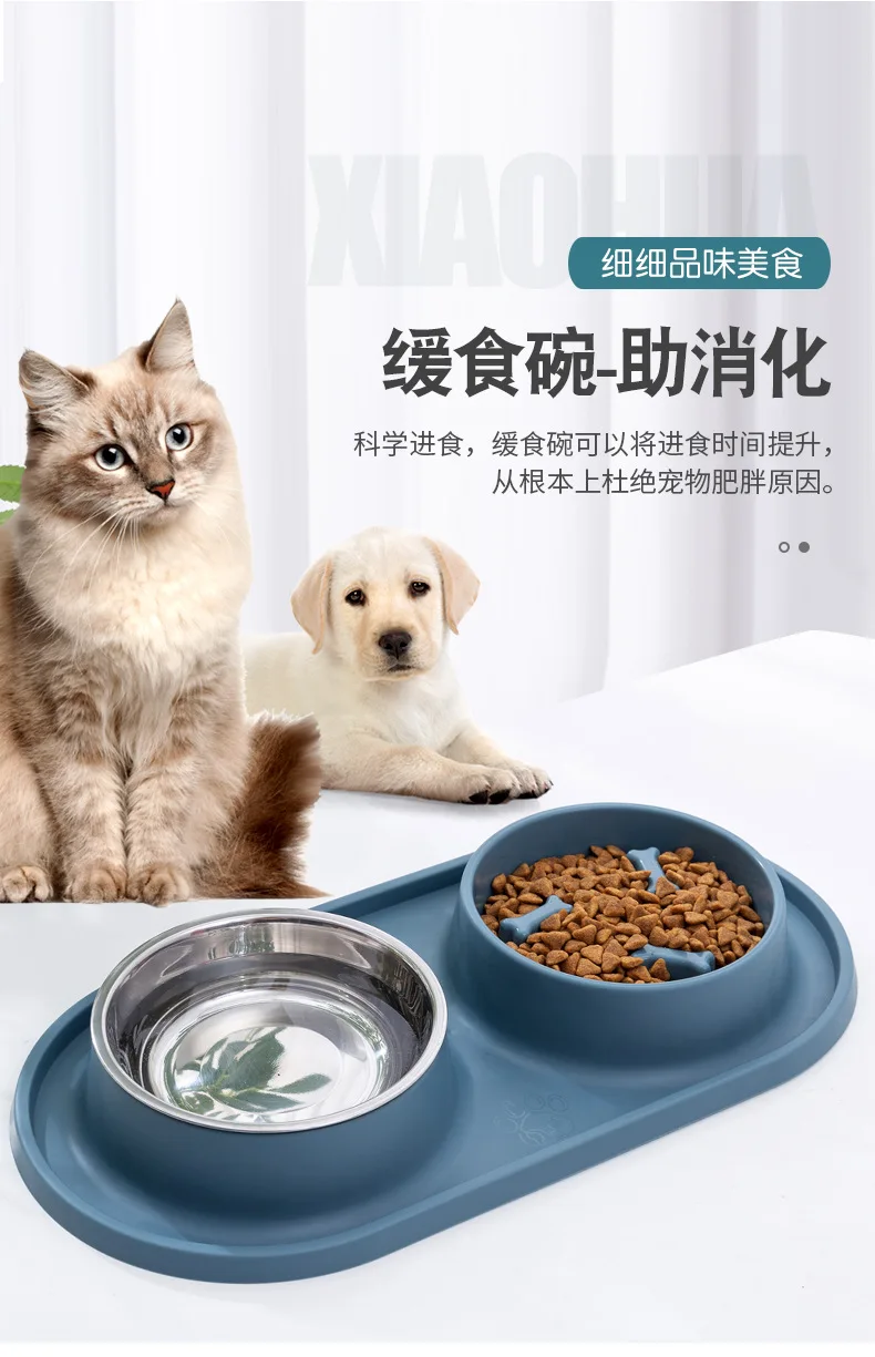 Suministros para mascotas, olla para perros, cuenco para gatos, protección del cuello, comida lenta, plato antiasfixia, antigolpes sobre doble cuenco Diagonal