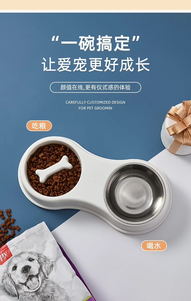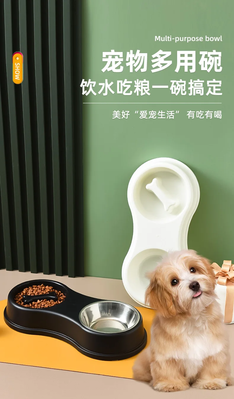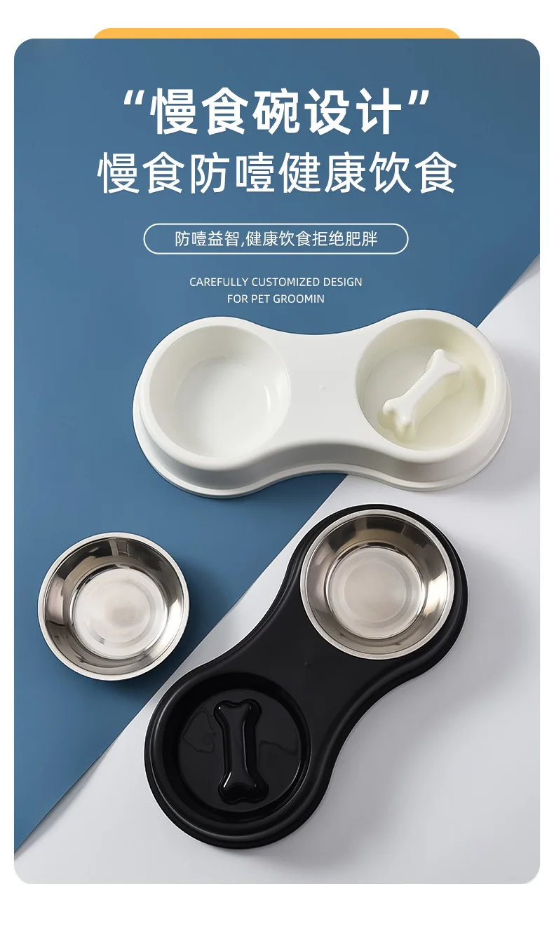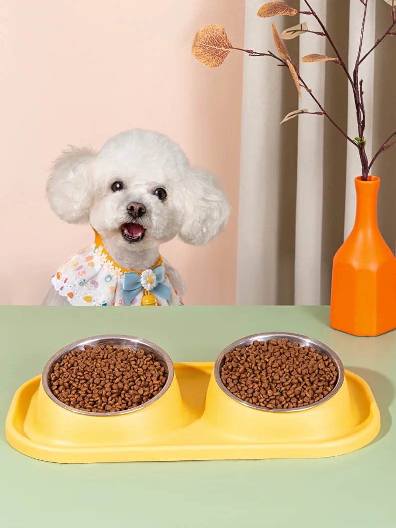 Suministros para mascotas, olla para perros, cuenco para gatos, protección del cuello, comida lenta, plato antiasfixia, antigolpes sobre doble cuenco Diagonal