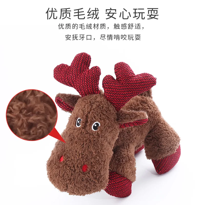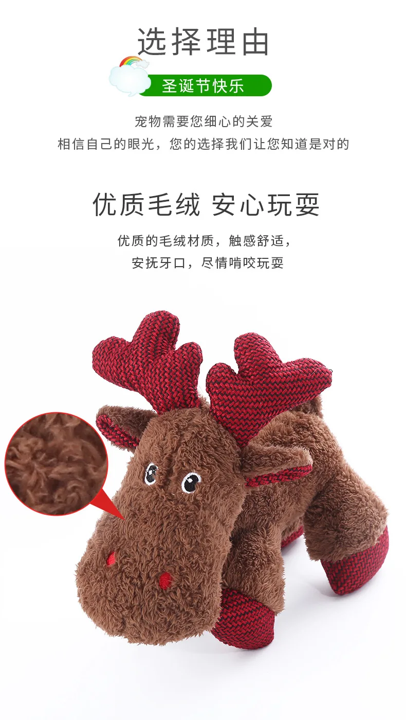 Suministros para mascotas de peluche de alce de Navidad para mascotas, juguete interactivo duradero para rechinar los dientes, accesorios para perros, juguetes para perros pequeños