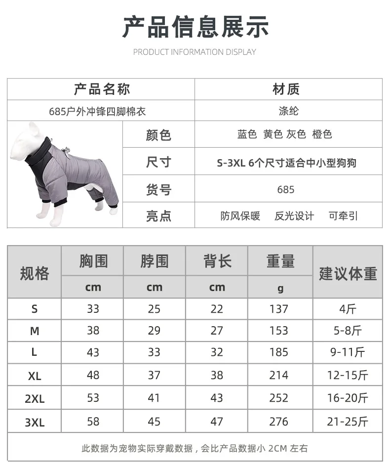 Suministros para perros Abrigo de algodón de cuatro patas para perro, abrigo reflectante de colores a juego, ropa impermeable para mascotas pequeñas y medianas, otoño e invierno, novedad