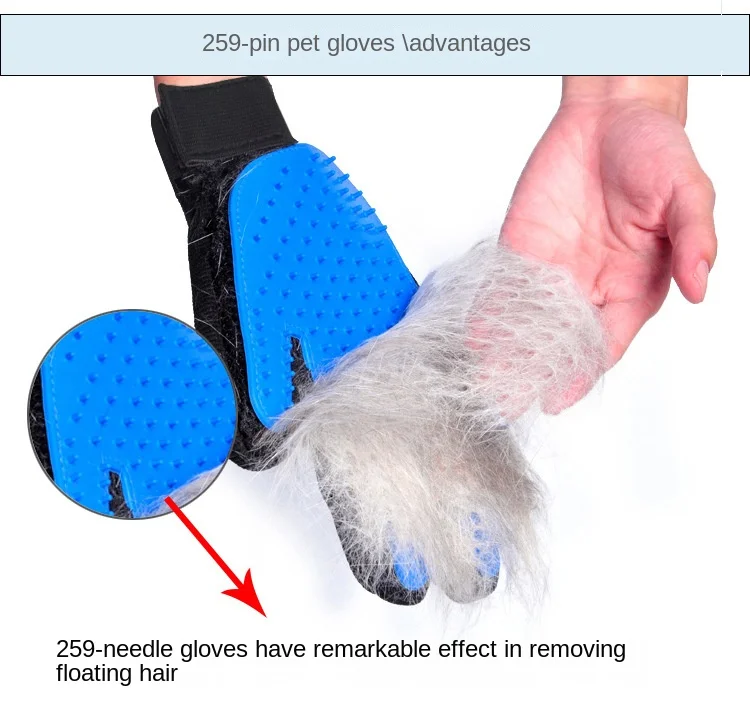Suministros para perros Guantes para mascotas de 259 Pines, para quitar el pelo flotante, limpieza, belleza, masaje, suministros para perros, peine