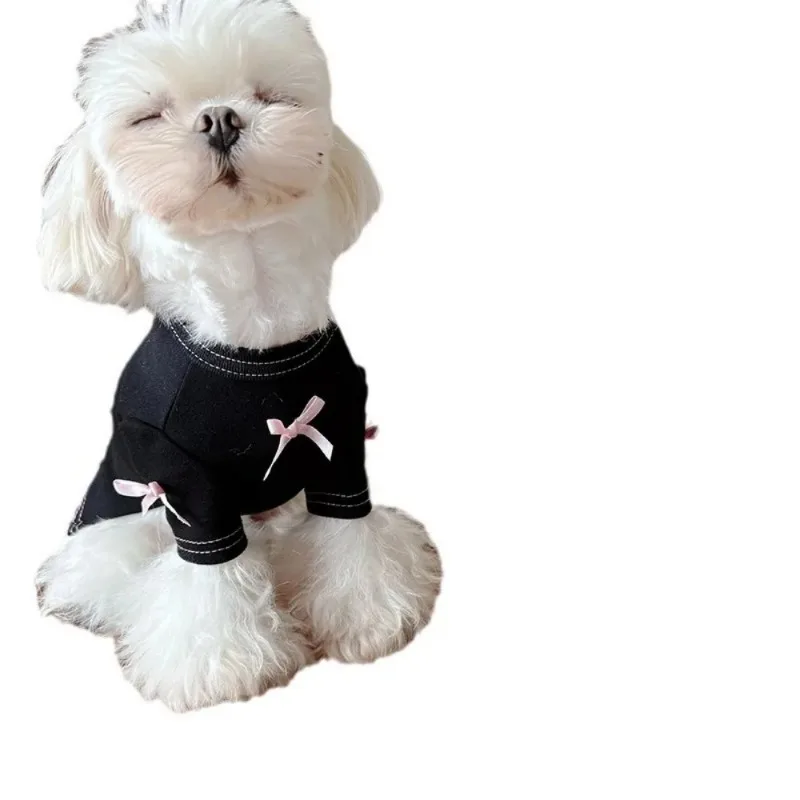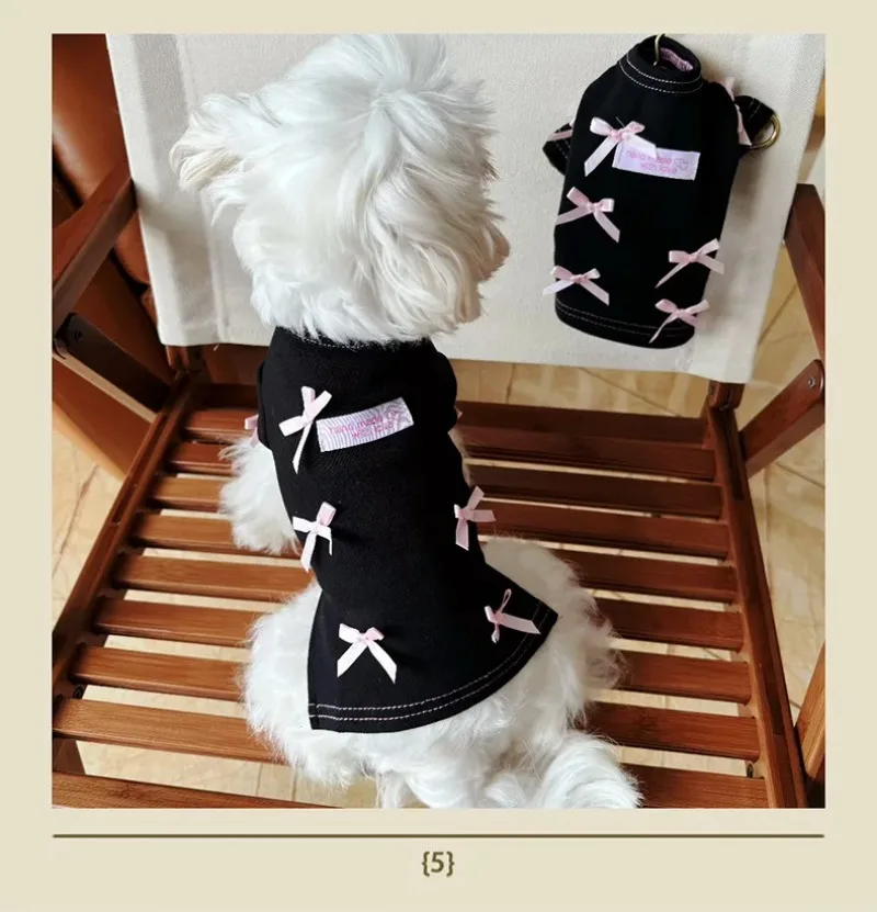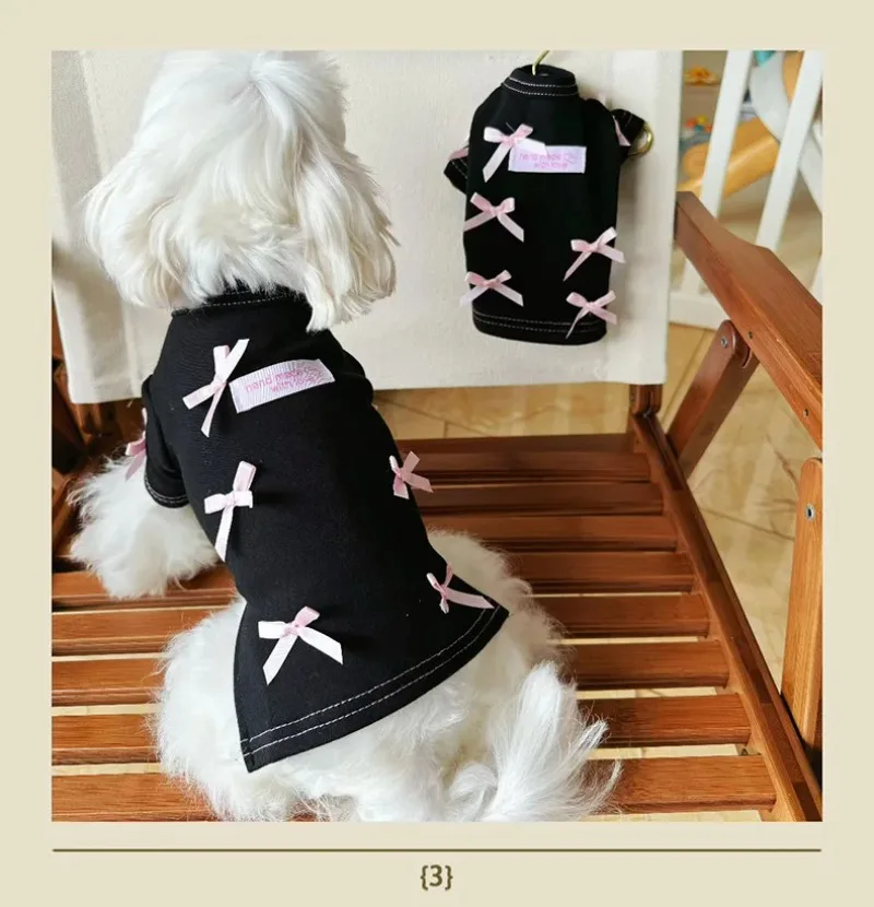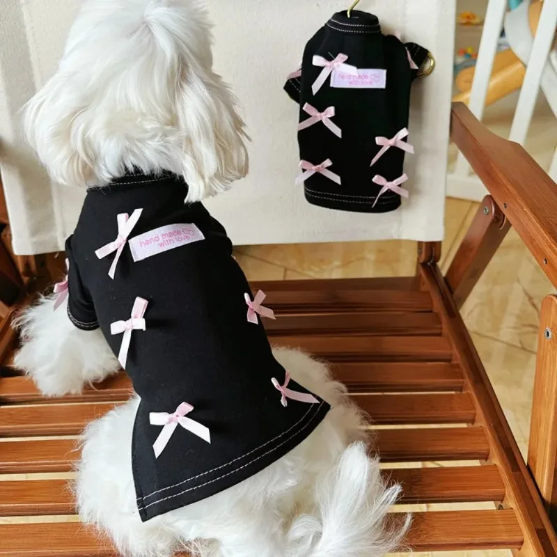 Summer Winter Pet Black Base Shirt Dog Cat Home Top Pink Bow Small Shirt Dog Pullover Top Puppy Clothes for Small Dogs T_Shirt