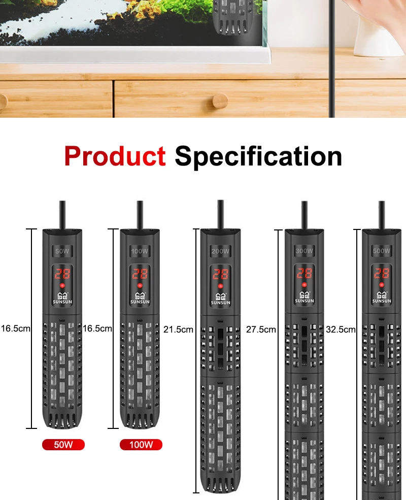 Calentador sumergible para acuario, pantalla LCD para tanque de peces, varilla de calentamiento de agua ajustable Digital, termostato de Control de temperatura constante, suministros, accesorios, 50W, 100W, 200W, 300W, 500 V