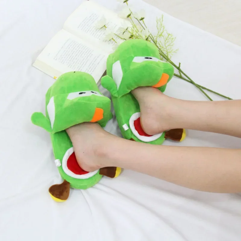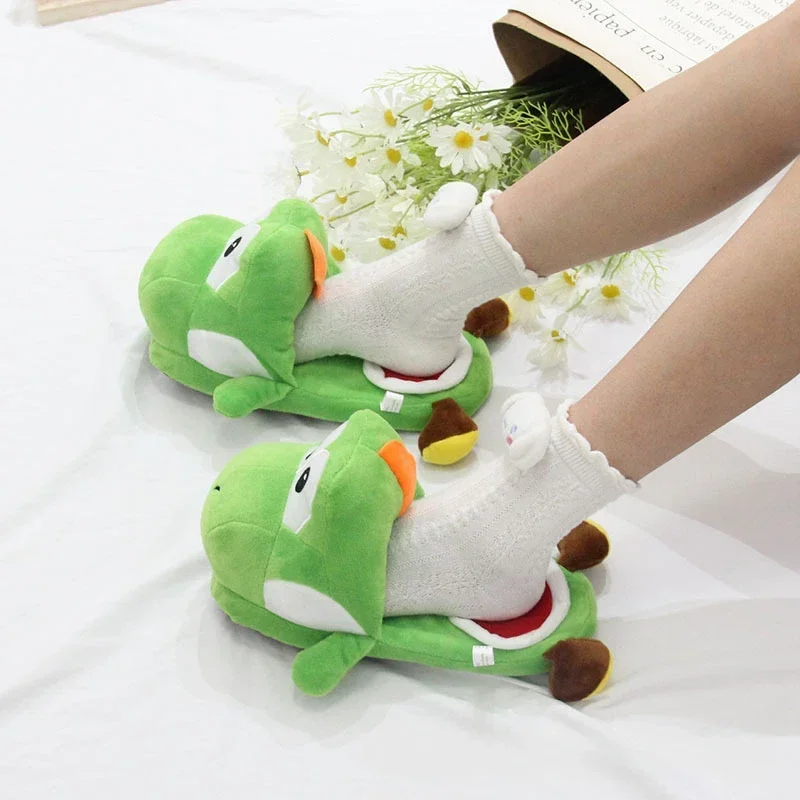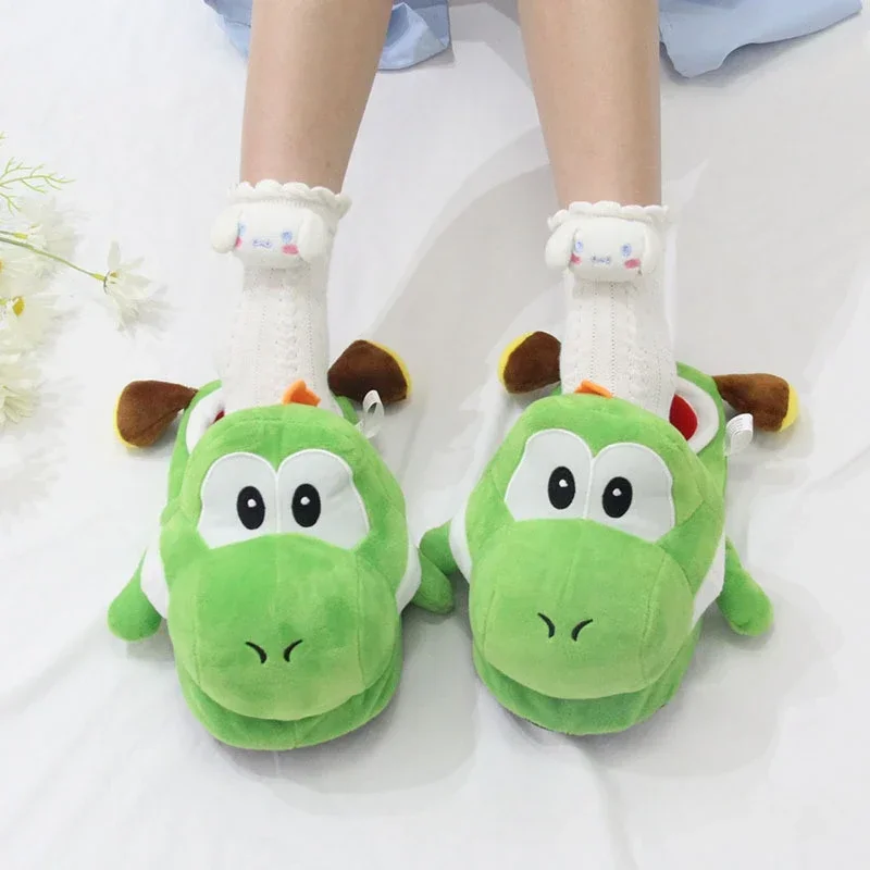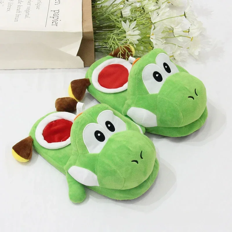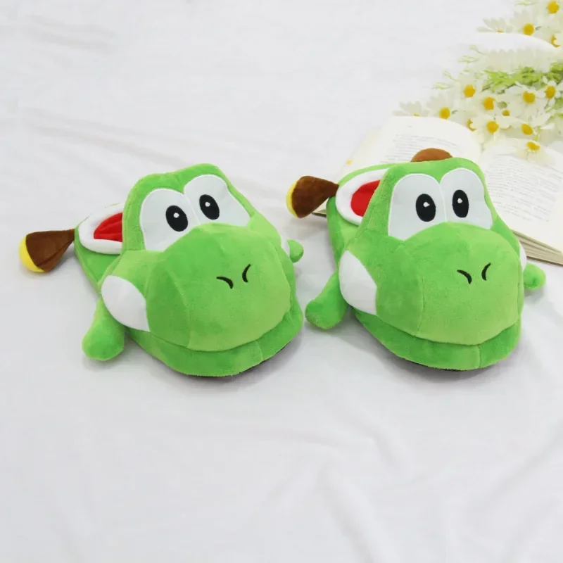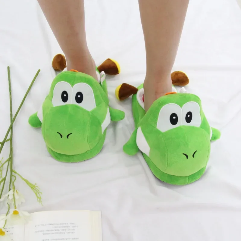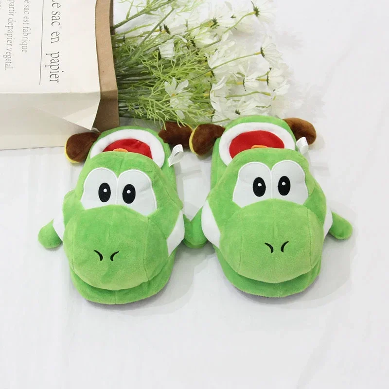 Super Marios Bros Yoshi Cosplay Zapatillas de Peluche hombres mujeres dibujos animados invierno cálido antideslizante Fondo suave comodidad Kawaii zapatos de algodón