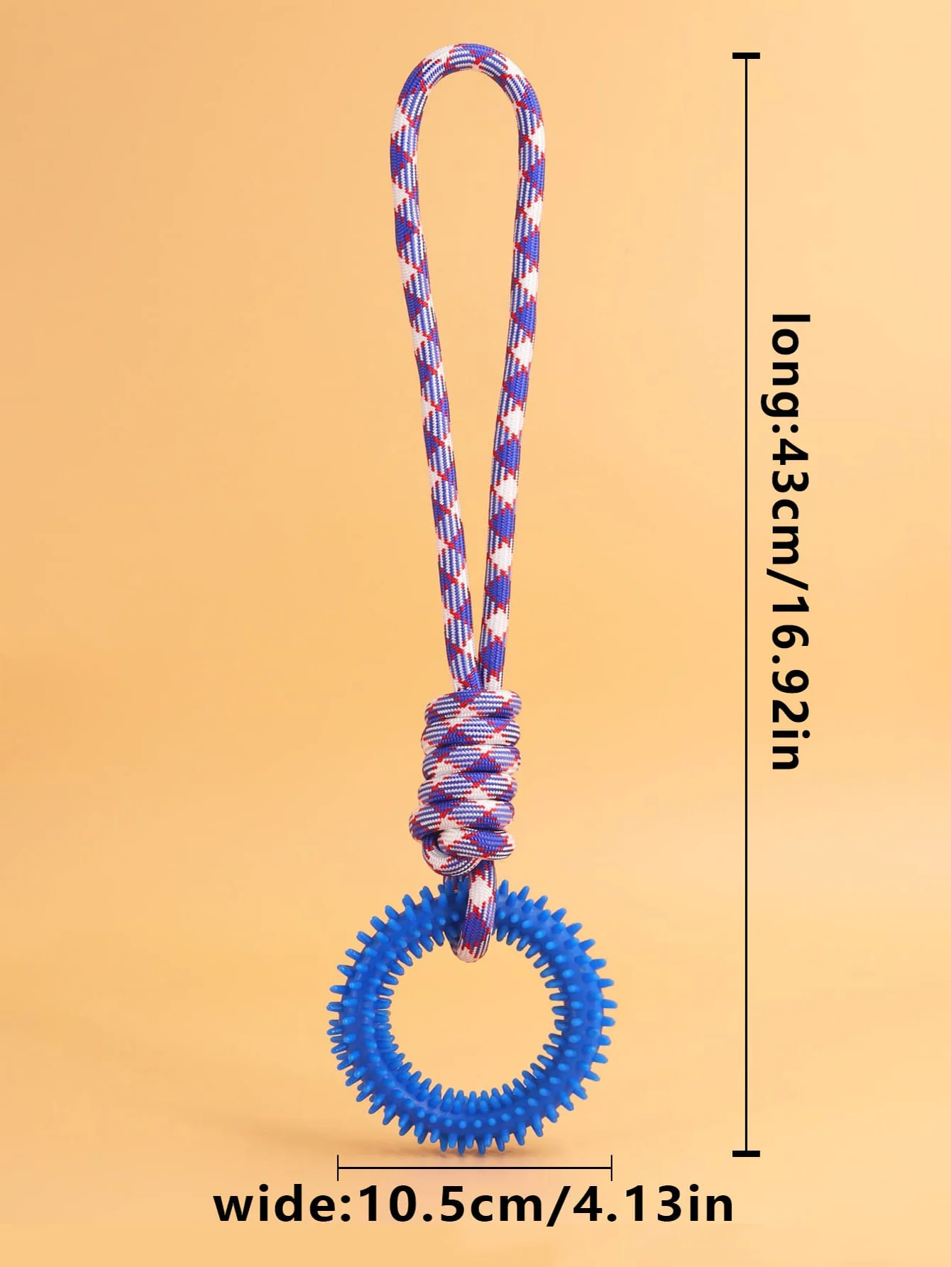 • Anillo de púas para la limpieza de los dientes:La característica de anillo con púas de este juguete ayuda a limpiar los dientes de su perro mientras juegan, promoviendo una buena higiene dental.