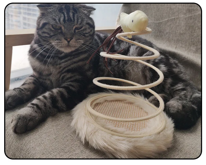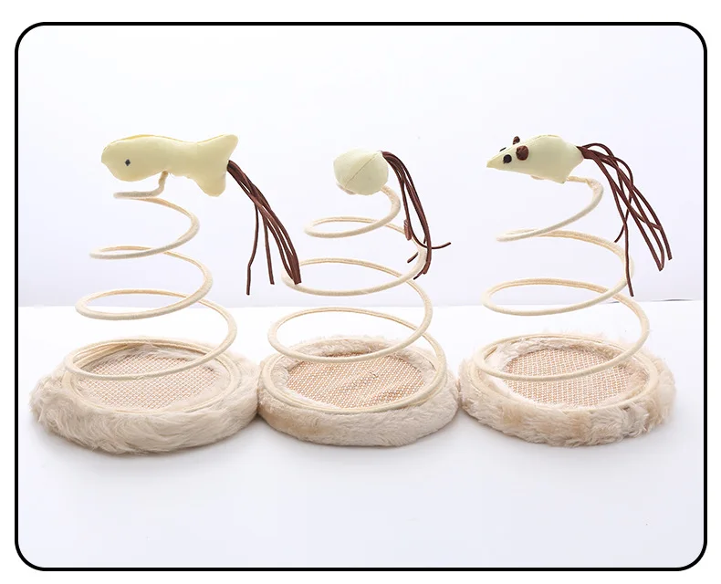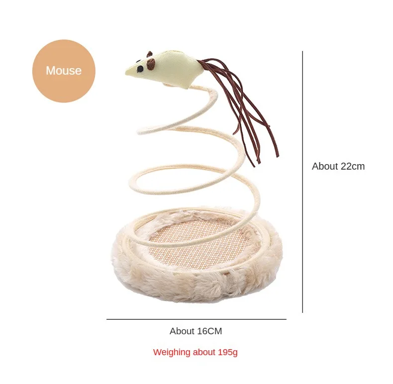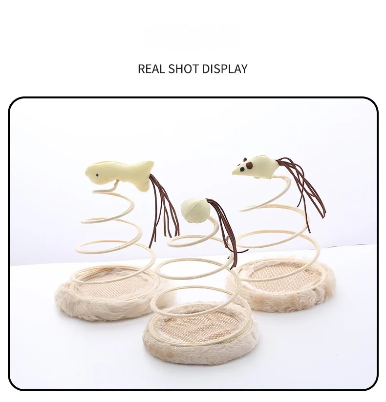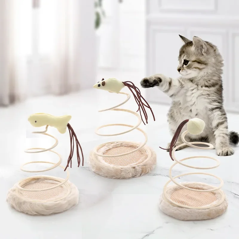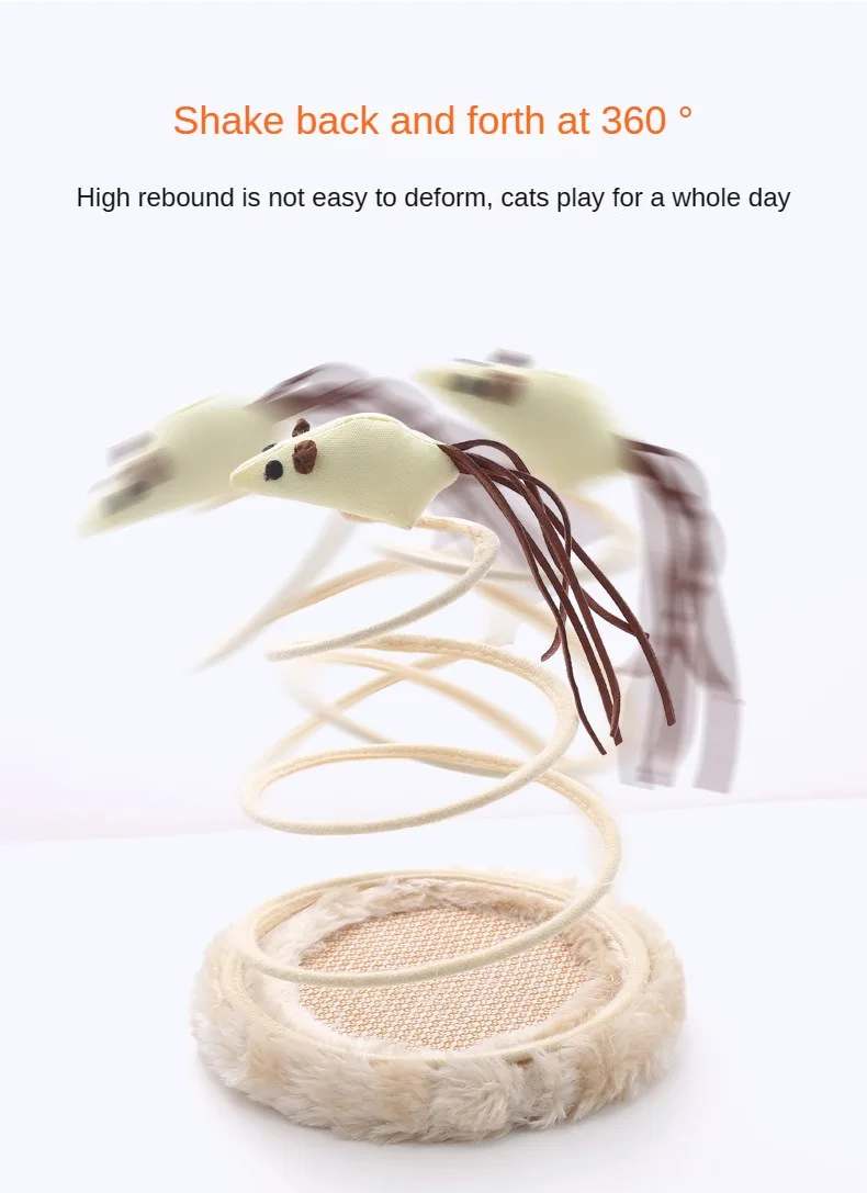 Tabla de rebote de resorte para gato, juguete interactivo, rascador, pelota de plumas, juguete de felpa con placa de resorte y ratón divertido