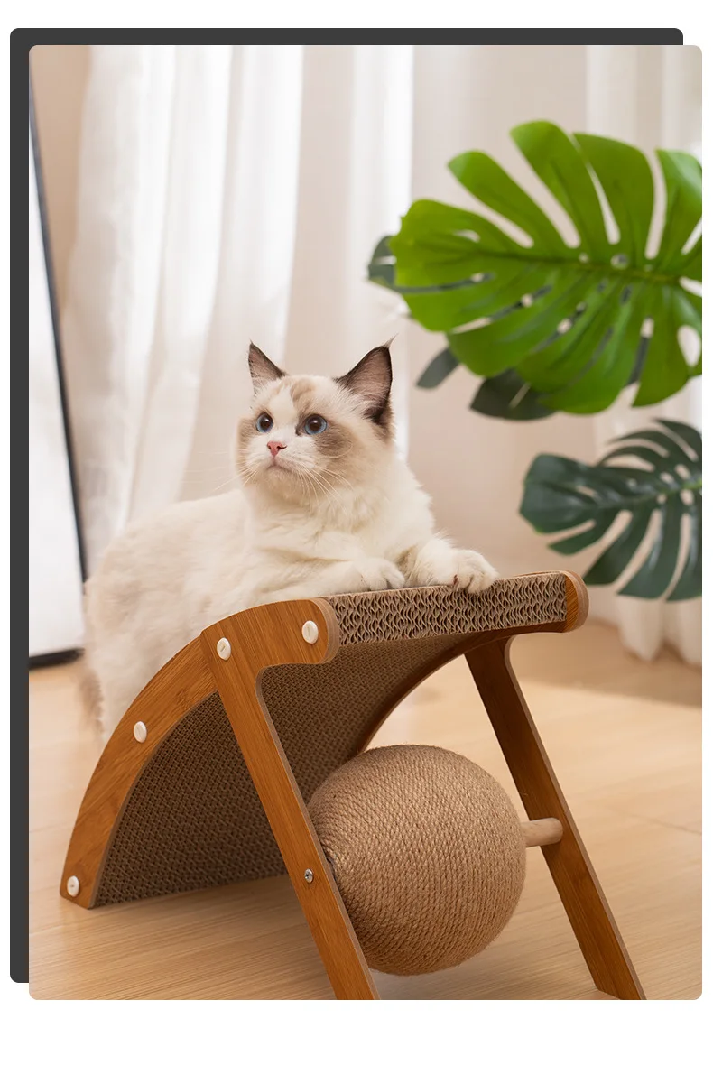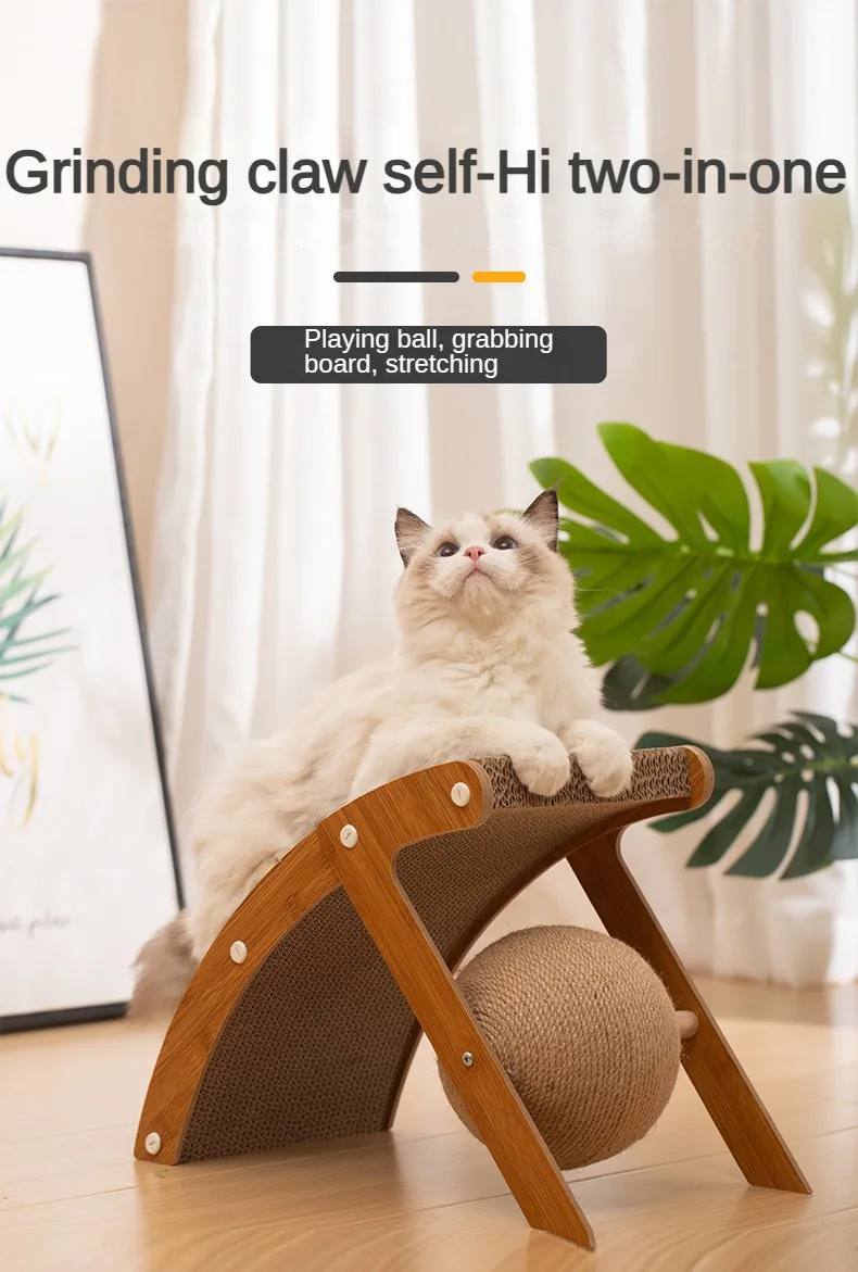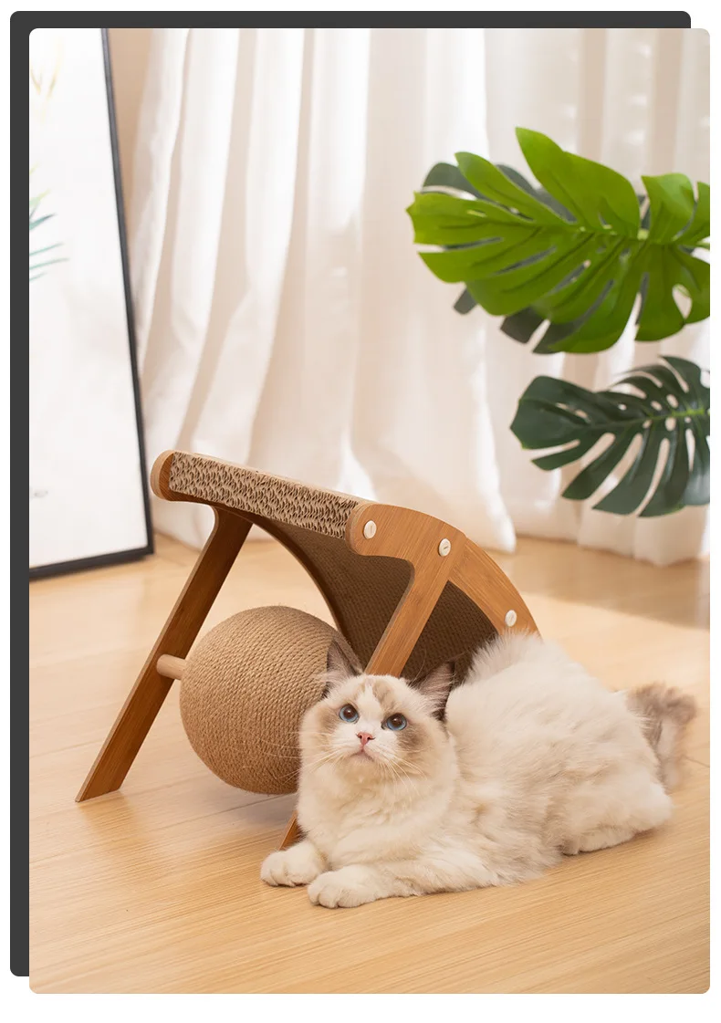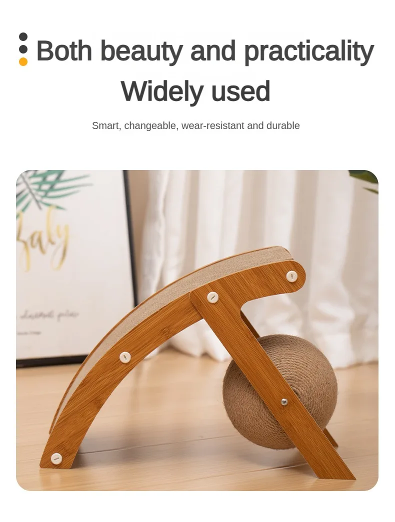 Tablero de madera para agarrar gatos, marco de escalada Vertical, resistente a los arañazos, juguete para gatos, cuerda de Sisal giratoria, Bola de agarre curvada para gatos