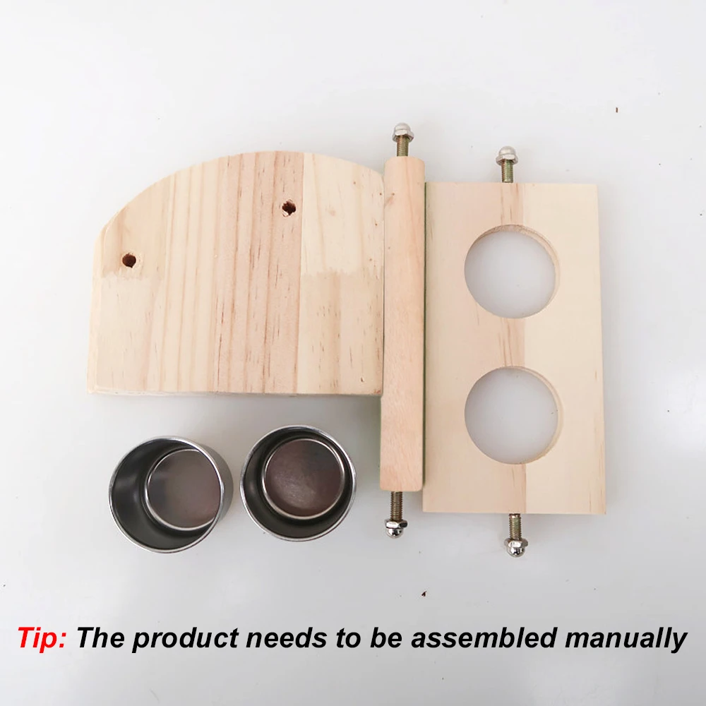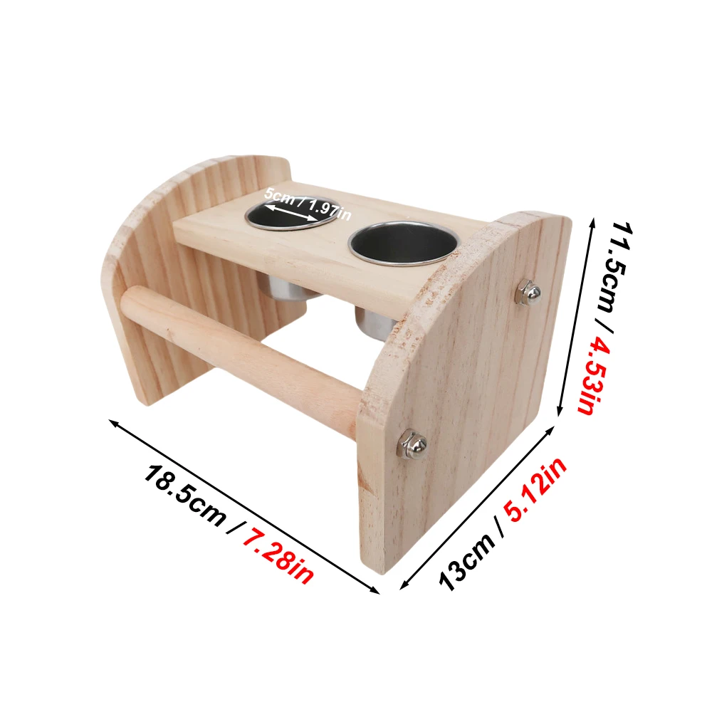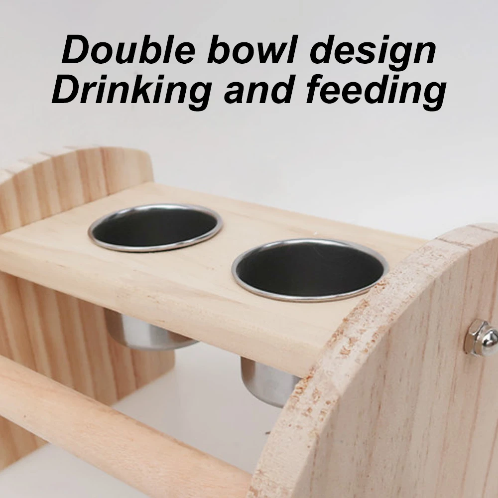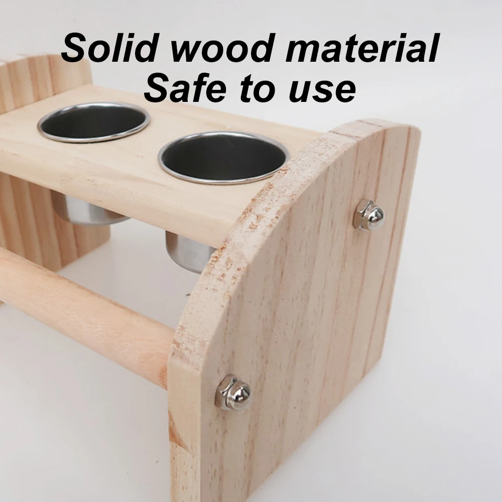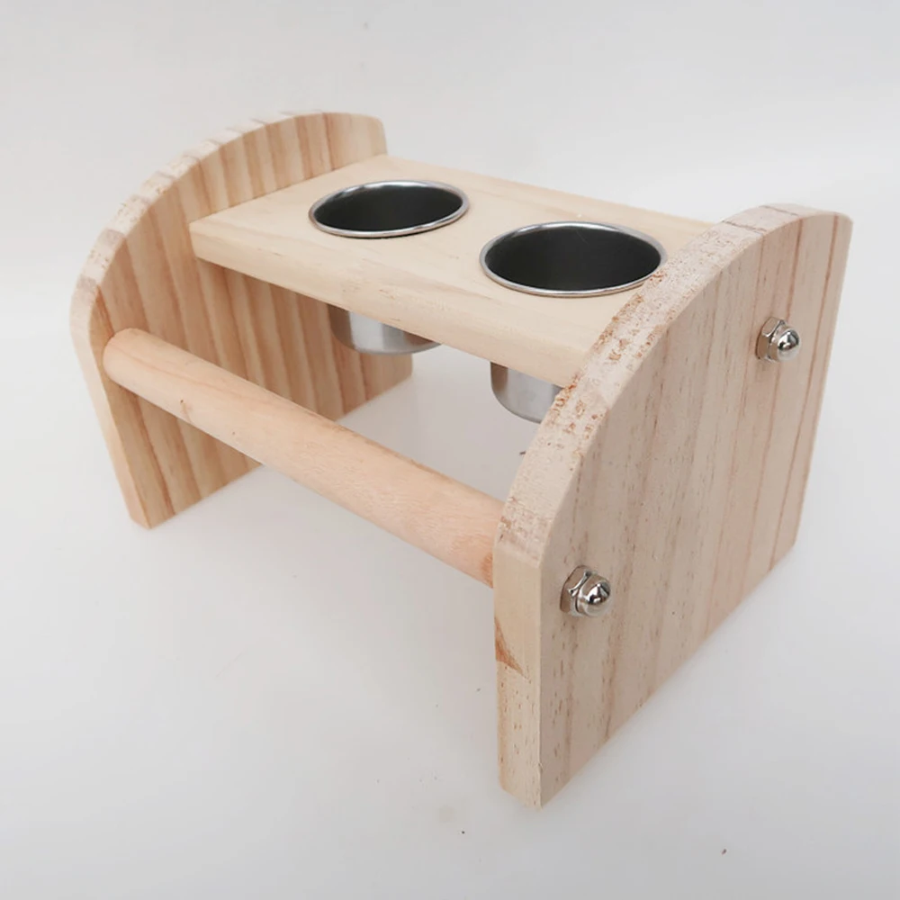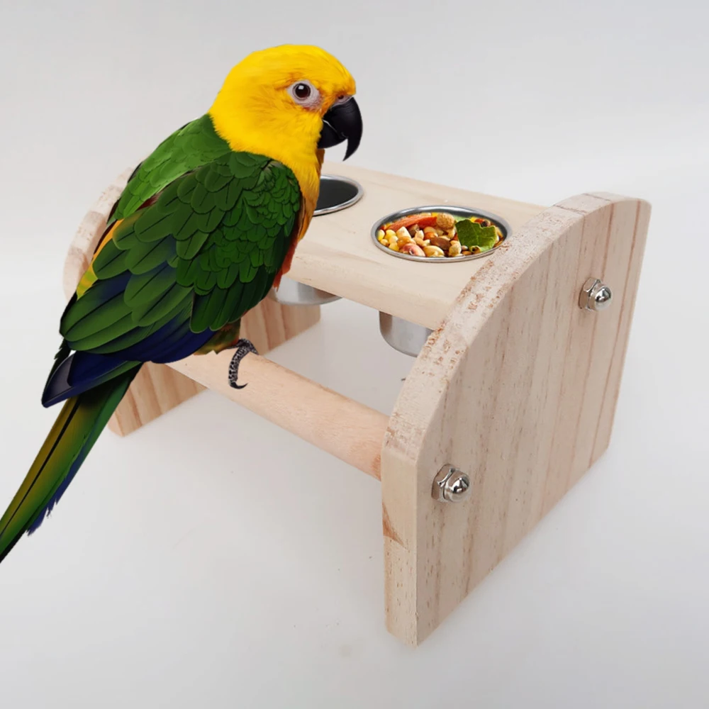 Tablero de madera de pie para pájaros, juguete con cuencos de acero inoxidable, tazas de alimentación para percha de pájaros, suministros para jaulas de loros y pájaros, 1 ud.