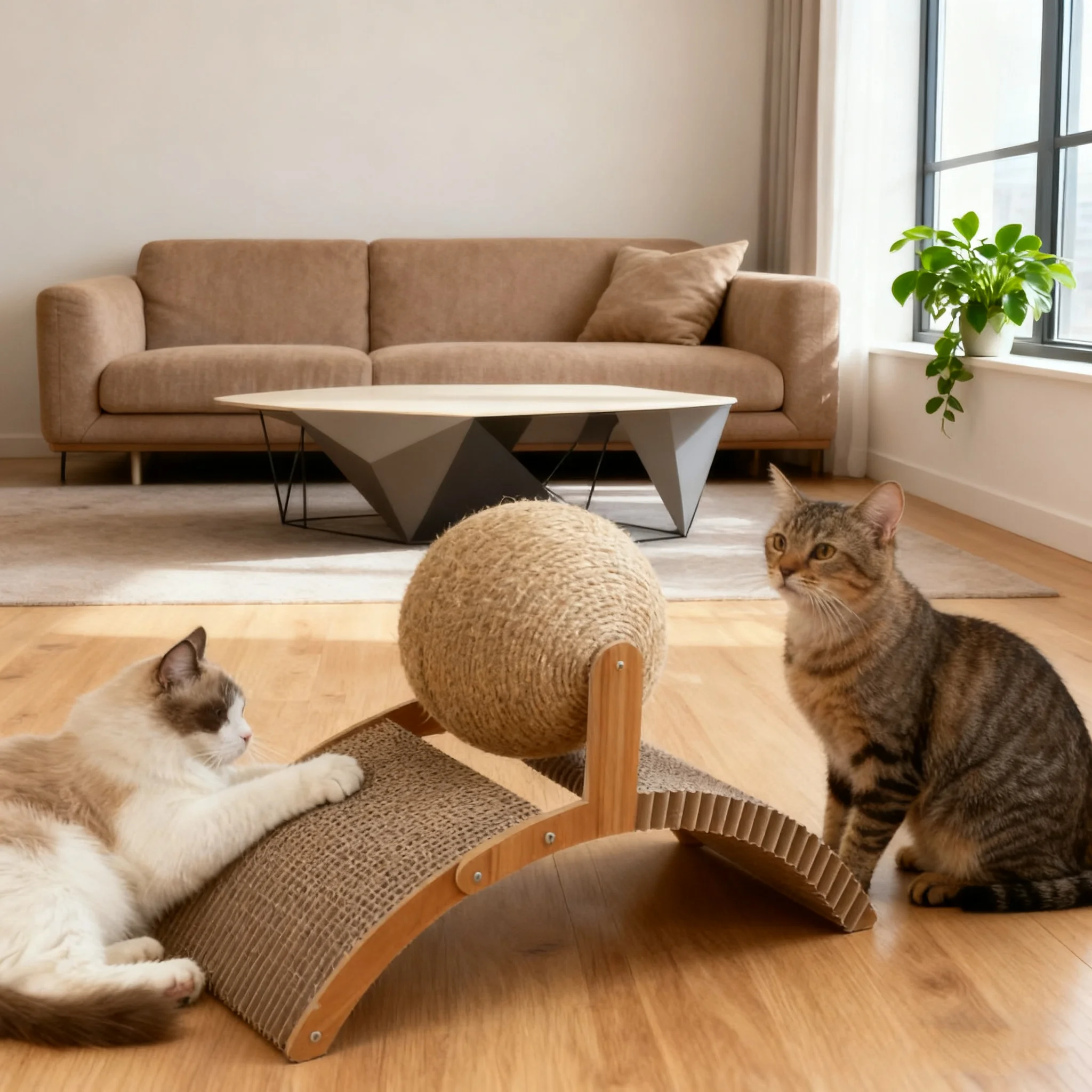 Es a la vez una herramienta para rascar para gatos, que satisface su instinto inato de rascar y reduce los daños a los muebles como sofás y cortinas; Otro excelente juguete que permite a los gatos liberar energía y ejercitar la coordinación física mientras juegan. Al mismo tiempo, también puede convertirse en un lugar de descanso para los gatos, donde pueden tumbarse y tomar una siesta cuando están cansados, dándoles una sensación de seguridad.