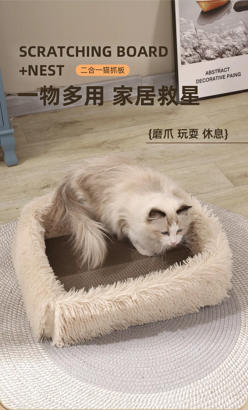 Tablero rascador multifuncional para gatos, plegable, para dormir y jugar, nido para gatos integrado, garra resistente a los arañazos, juguete corrugado para mascotas