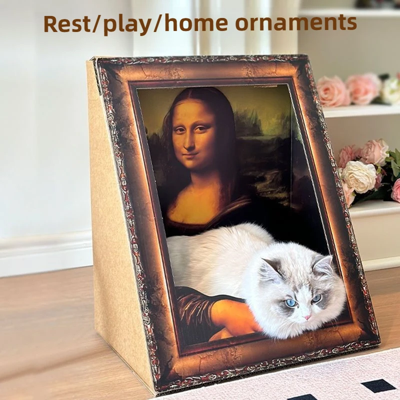 Tablero rascador de pintura al óleo, nido para gatos, nido Vertical integrado para gatos, resistente al desgaste, antiarañazos, suministros de juguetes para mascotas, marco de arte duradero