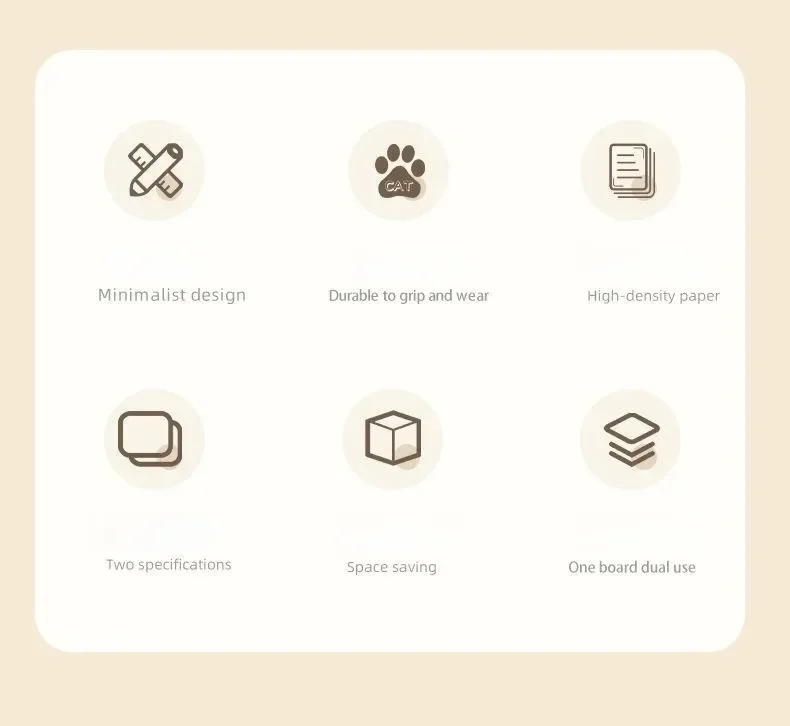 🔄 Reversible para 2 veces el uso y durabilidad:¡Esta es nuestra característica destacada!El rascador está construido con una almohadilla para rascar de dos caras hecha de cartón de mayor densidad.Cuando un lado esté desgastado, simplemente gírelo para obtener una superficie completamente nueva.Este diseño inteligente lo hace 50% más resistenteque los rascadores normales de un solo lado, lo que extiende significativamente su vida útil y le ahorra dinero.