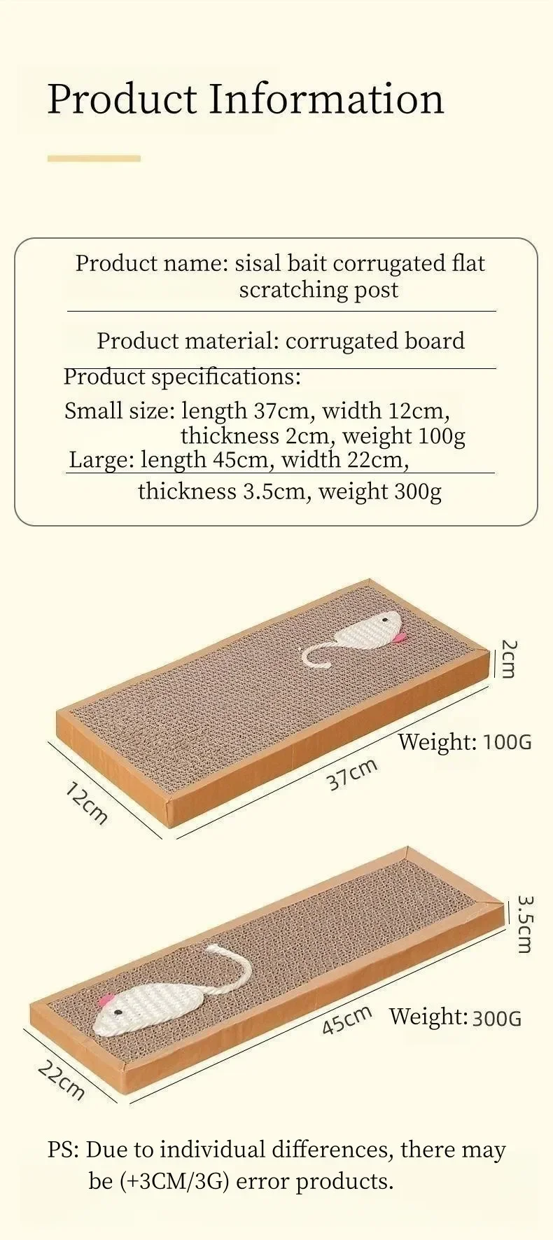 🎉 Juguete multifuncional y lugar de descanso:Su diseño plano y estable no solo sirve como un excelente rascador, sino que también funciona como una cómoda almohadilla de descanso o una plataforma para que juegue su gato. Es una solución todo en uno para las necesidades de su mascota.