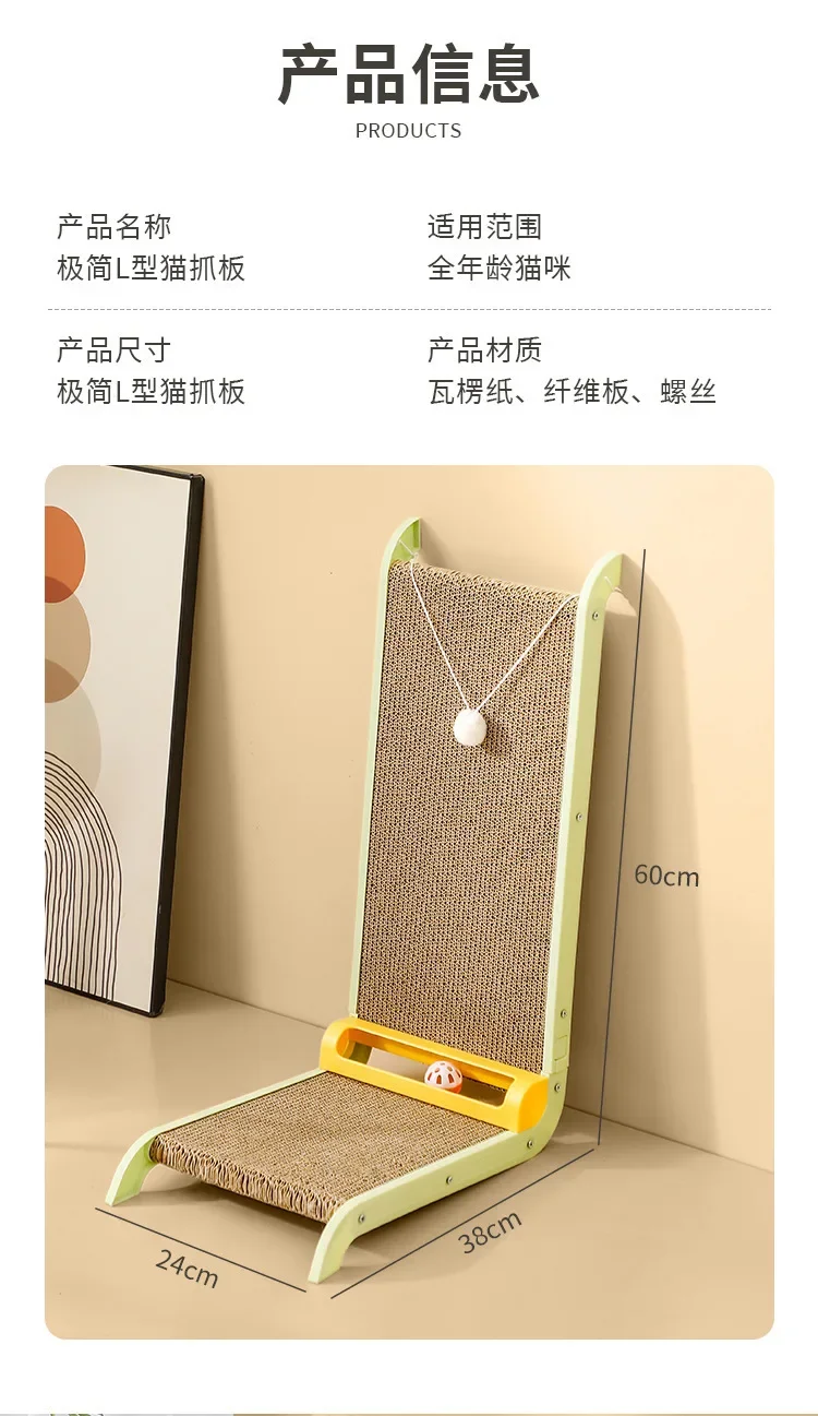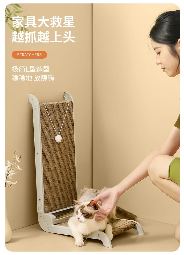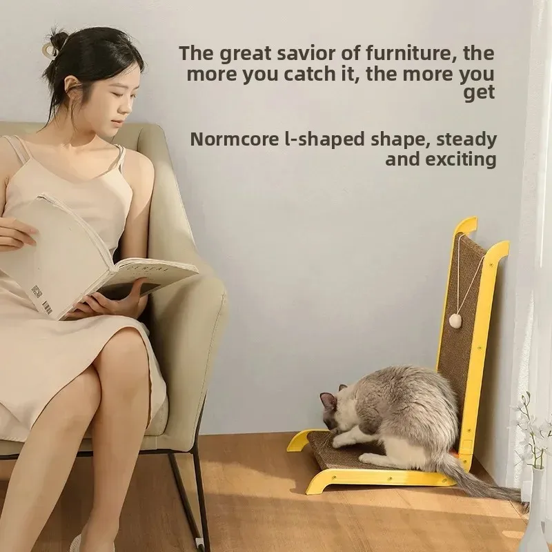 Tablero para rascar gatos Simple en forma de L, tablero de garra grande Vertical resistente al desgaste, papel corrugado resistente a los arañazos