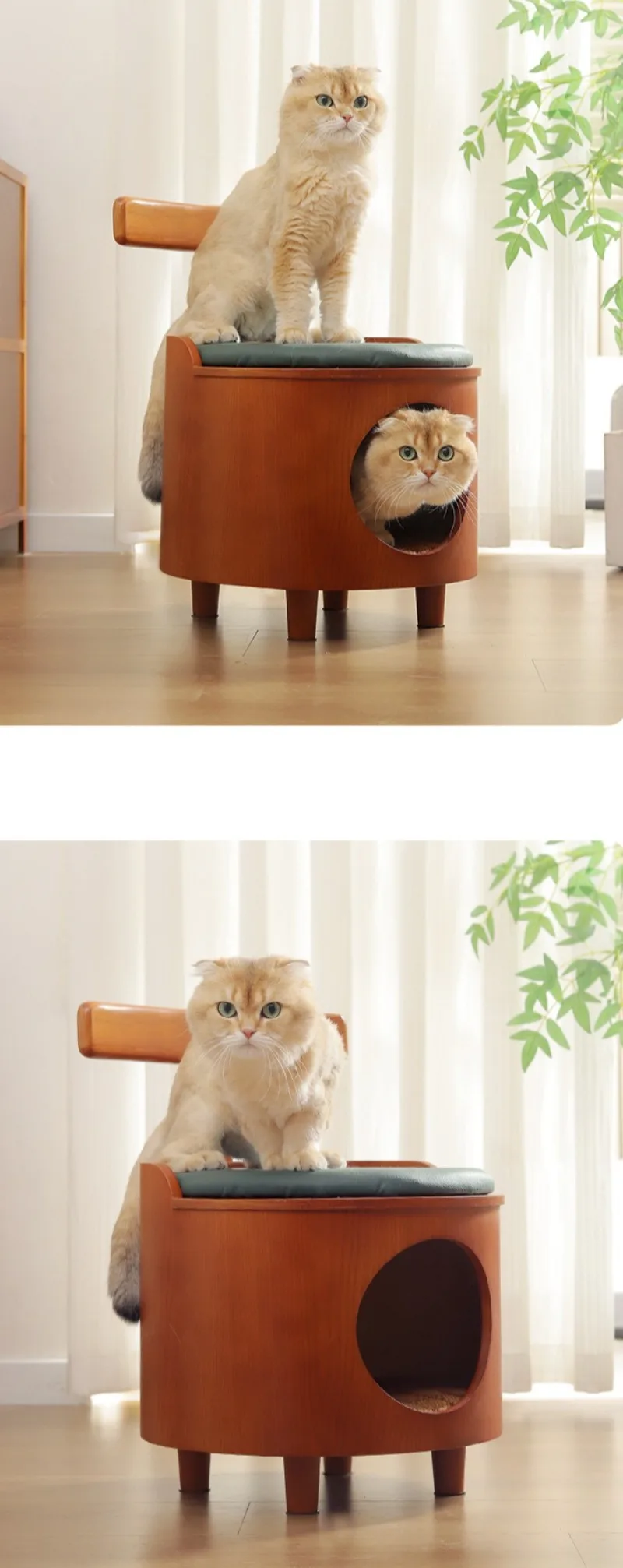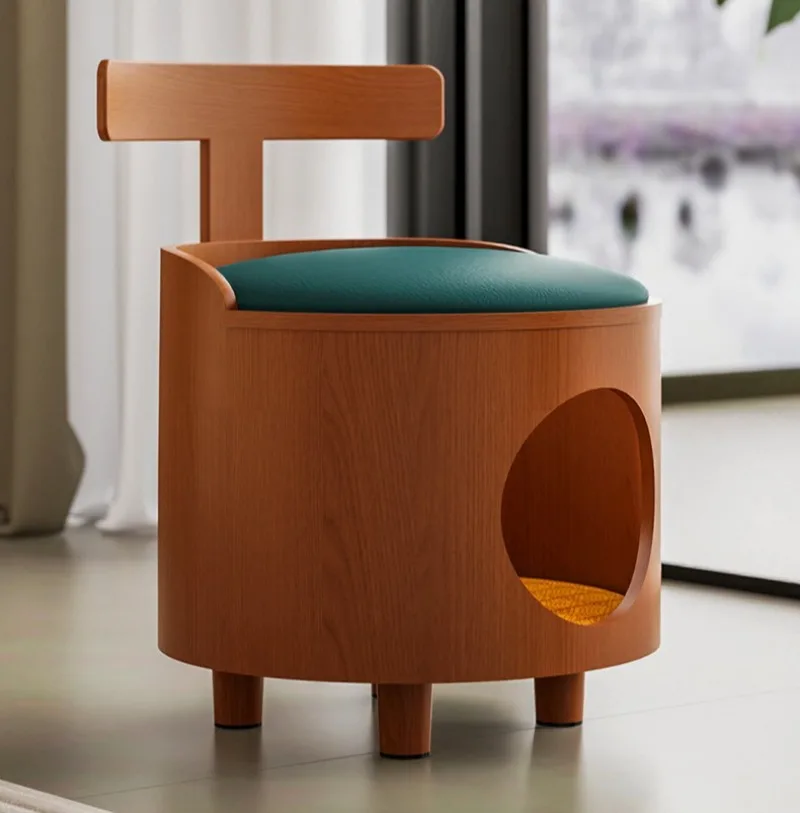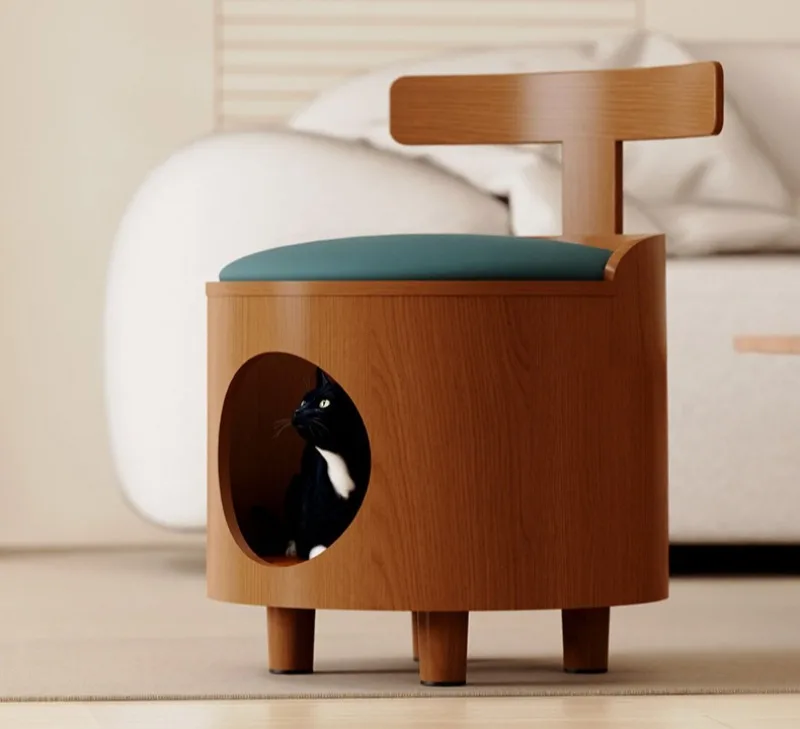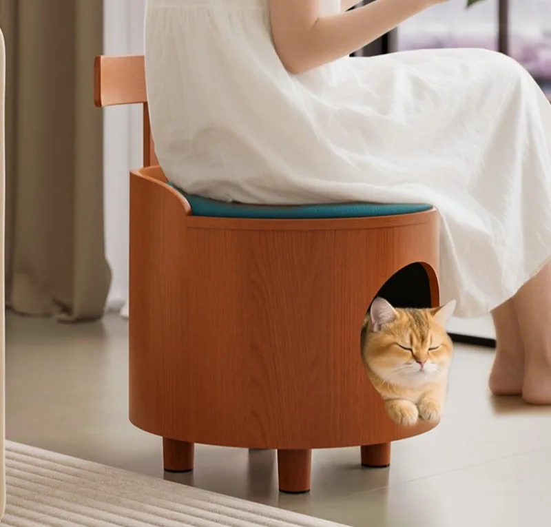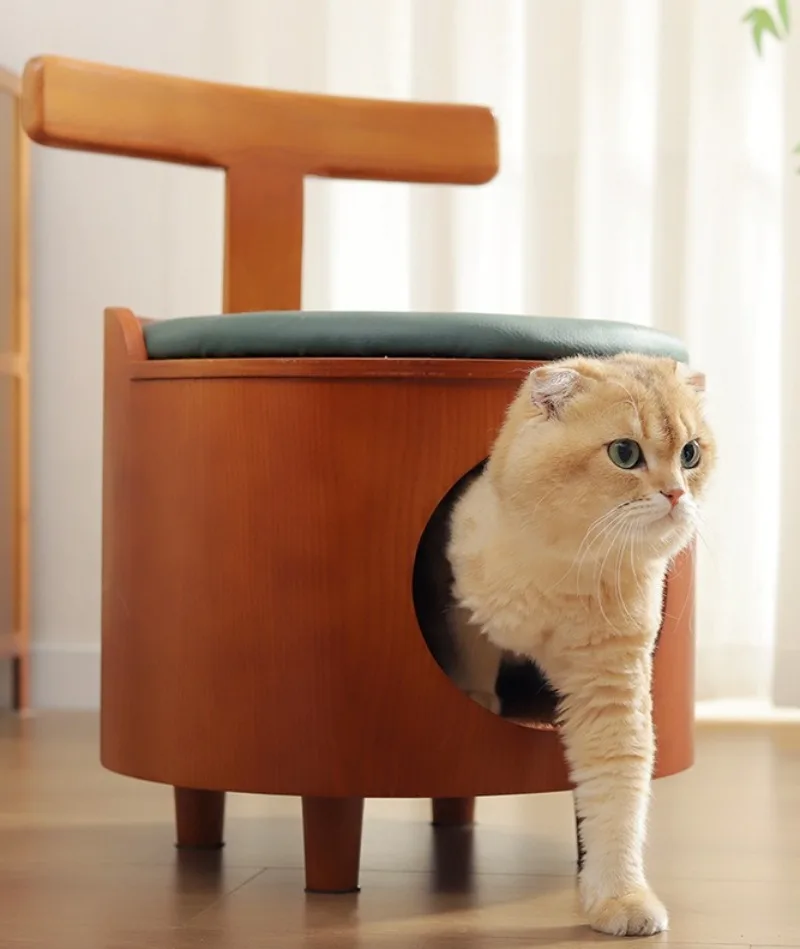 Taburete nido de gato de doble uso de madera, casa interior, escondido cerrado, taburetes para zapatos, camas para gatos durmientes, cálido, a prueba de humedad para mascotas