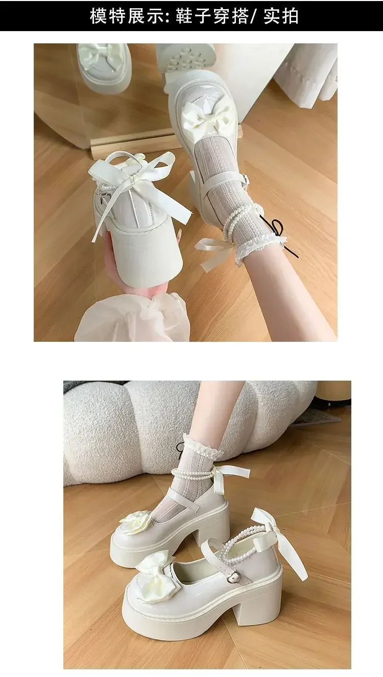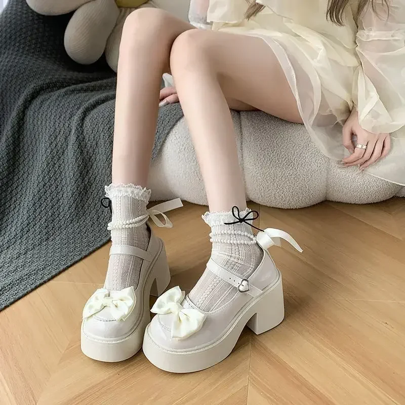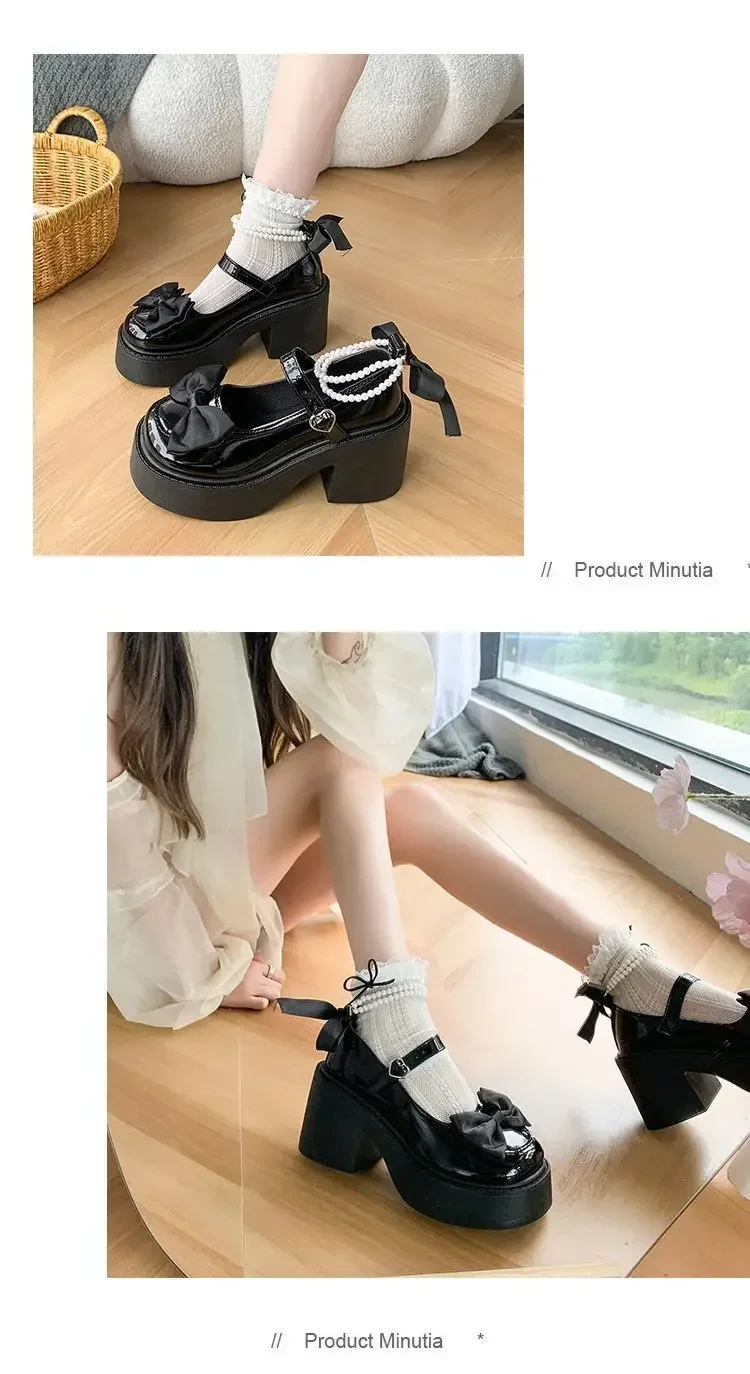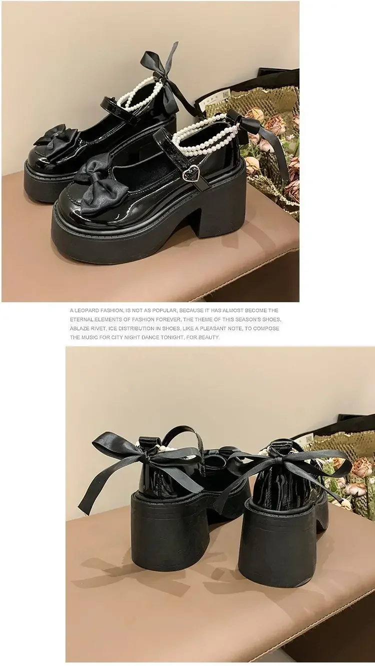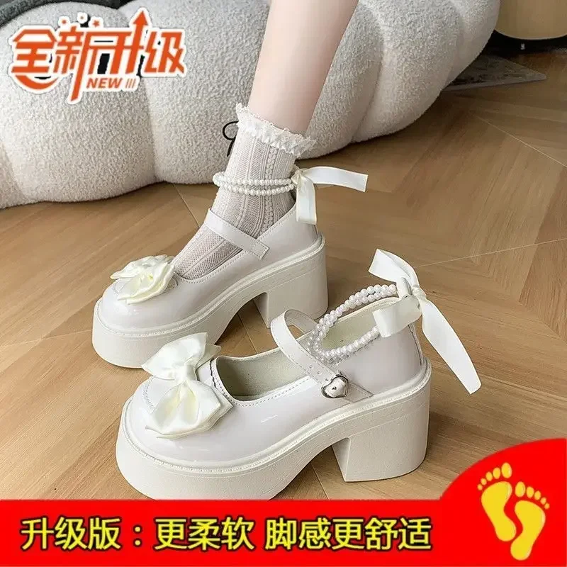 Tacones altos para mujer 2024, tacones cuadrados de alta calidad, lazo Mary Jane, punta redonda, vestido con hebilla, tacones altos para fiesta para mujer
