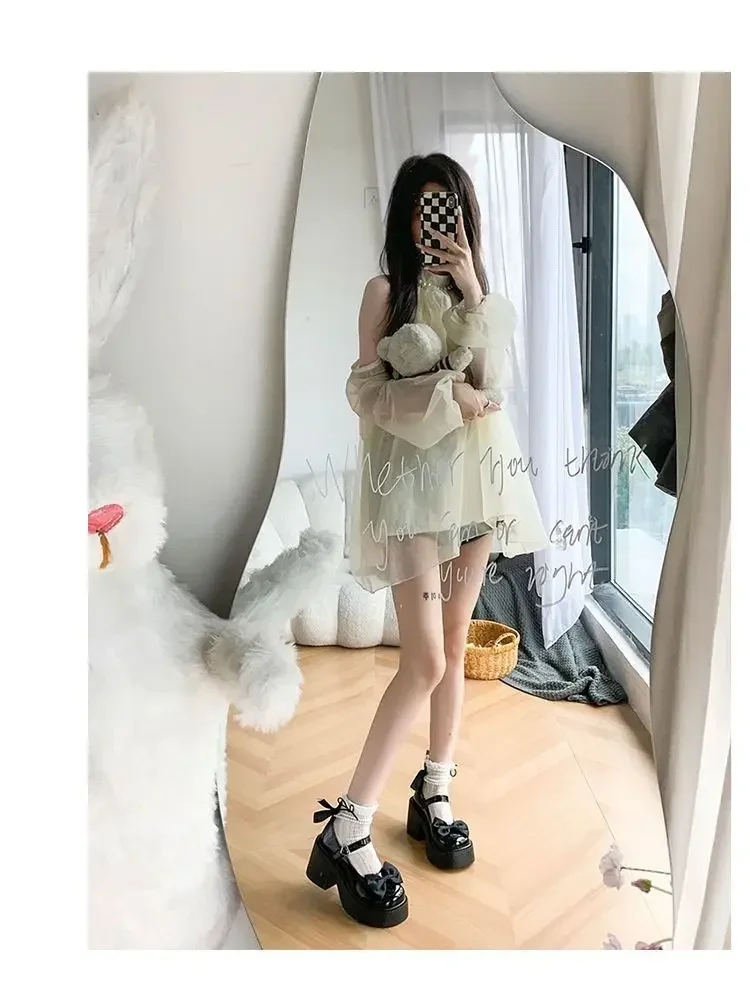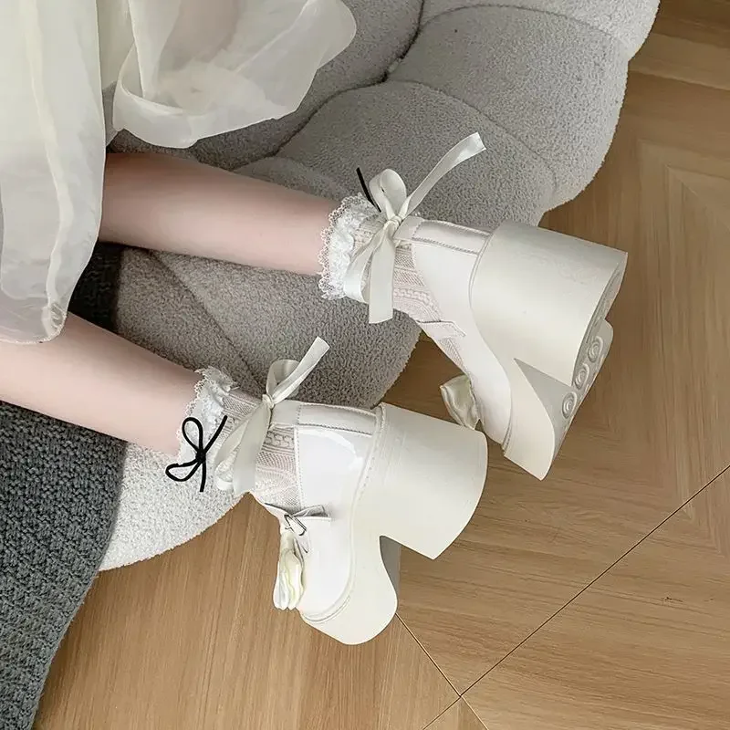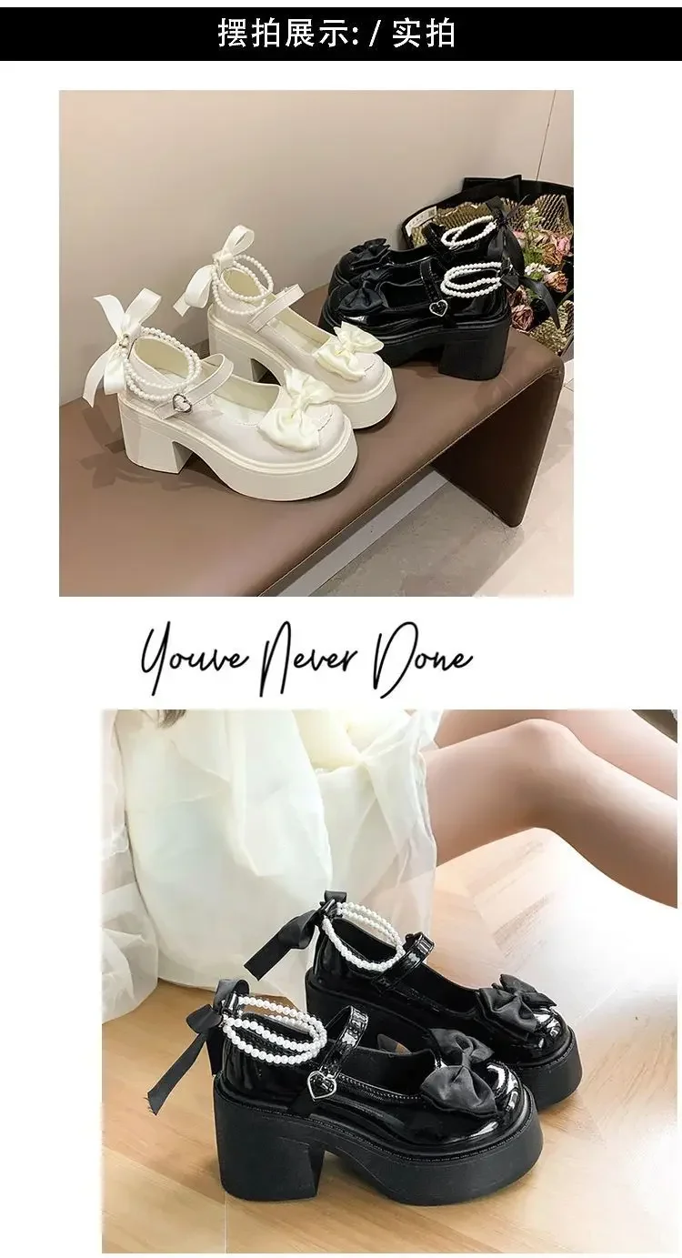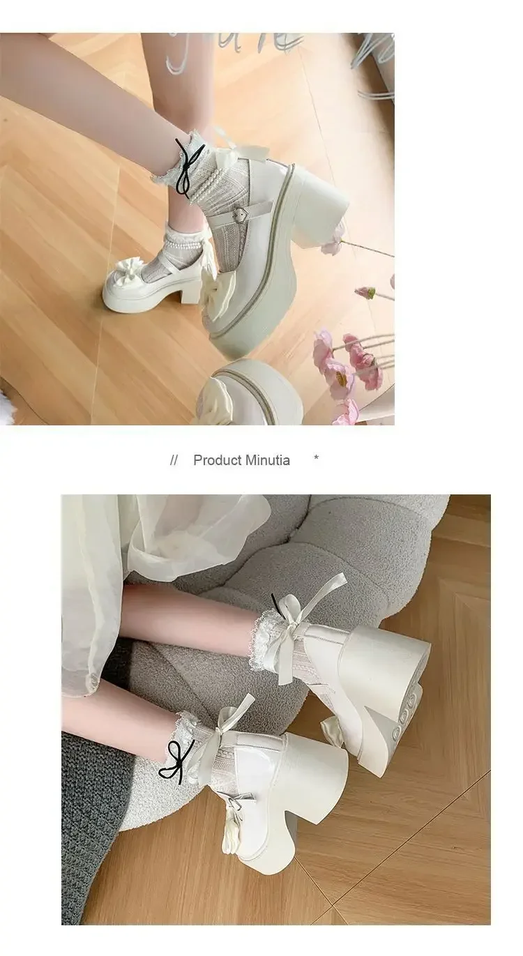 Tacones altos para mujer 2024, tacones cuadrados de alta calidad, lazo Mary Jane, punta redonda, vestido con hebilla, tacones altos para fiesta para mujer