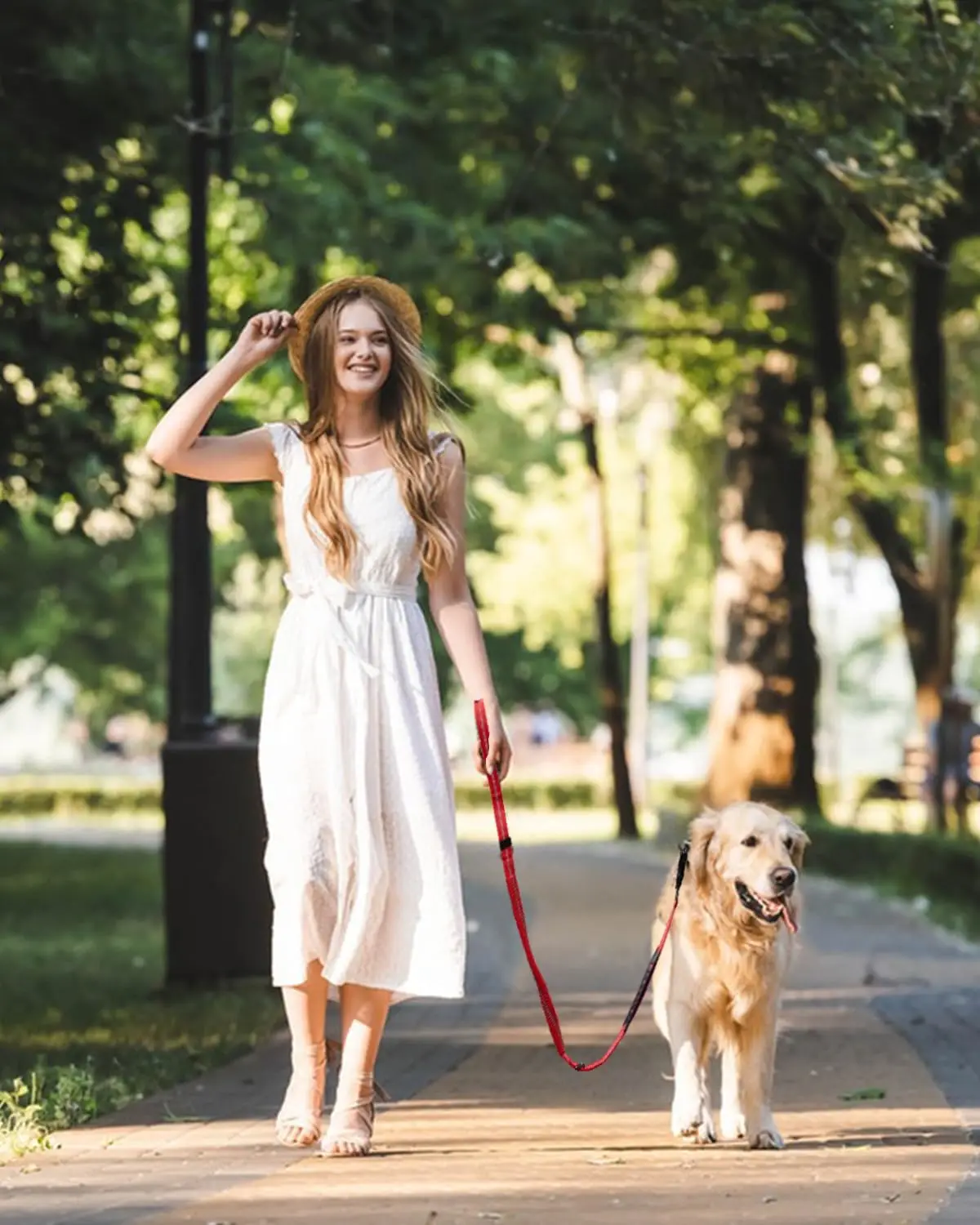 【LAS MULTIUSOS】: 2 asas diferentes están diseñadas en esta correa elástica para perros grandes.El mango acolchado Easy Walking es más adecuado para el paseo diario de su perro.La manija de control de tráfico es más adecuada para treinar a su perro para evitar tirar o encontrar situaciones especiales (como que los coches que se acercan, cruzan la acera...)
