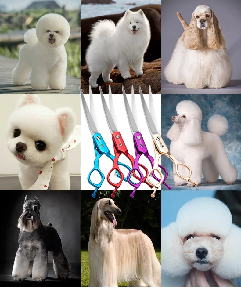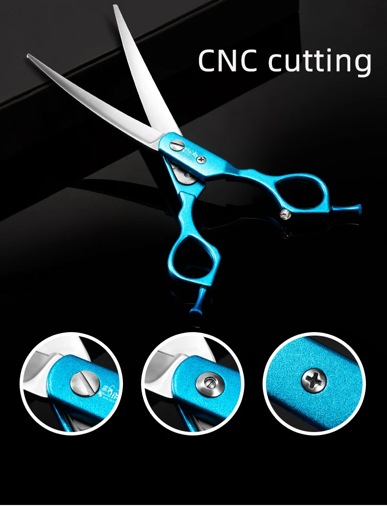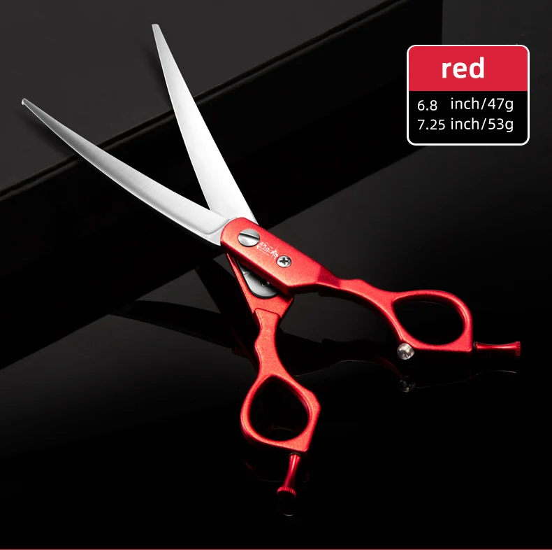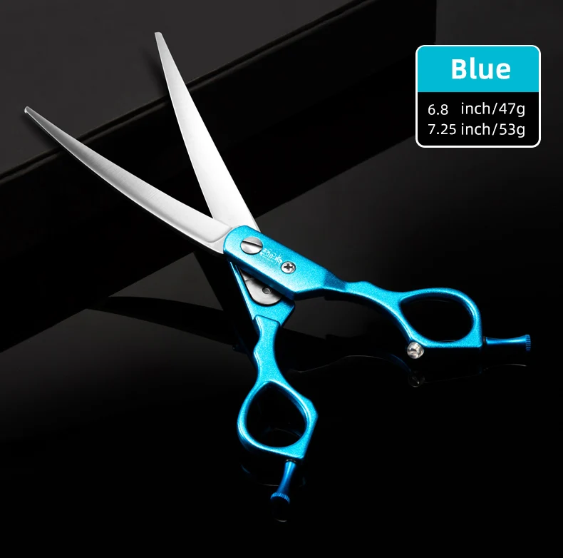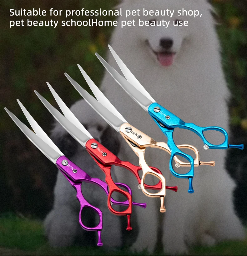 Taiwan Origin-tijeras doradas de cosmetología para mascotas, herramientas curvadas de aseo para perros, tijeras de Color Teddy, 6,8 pulgadas y 7,25 pulgadas