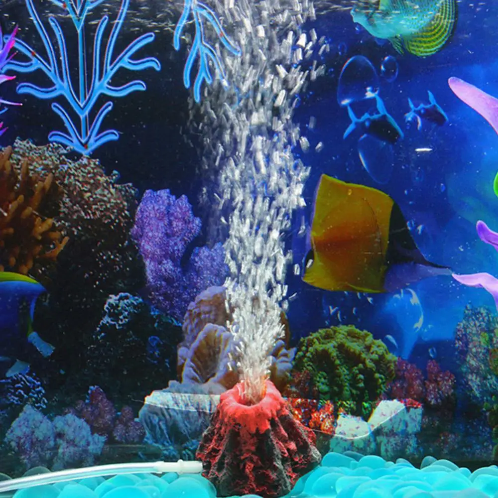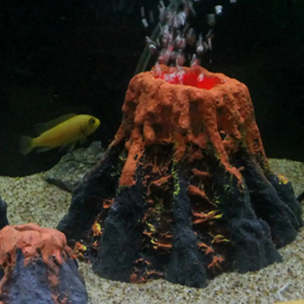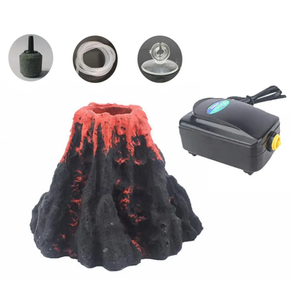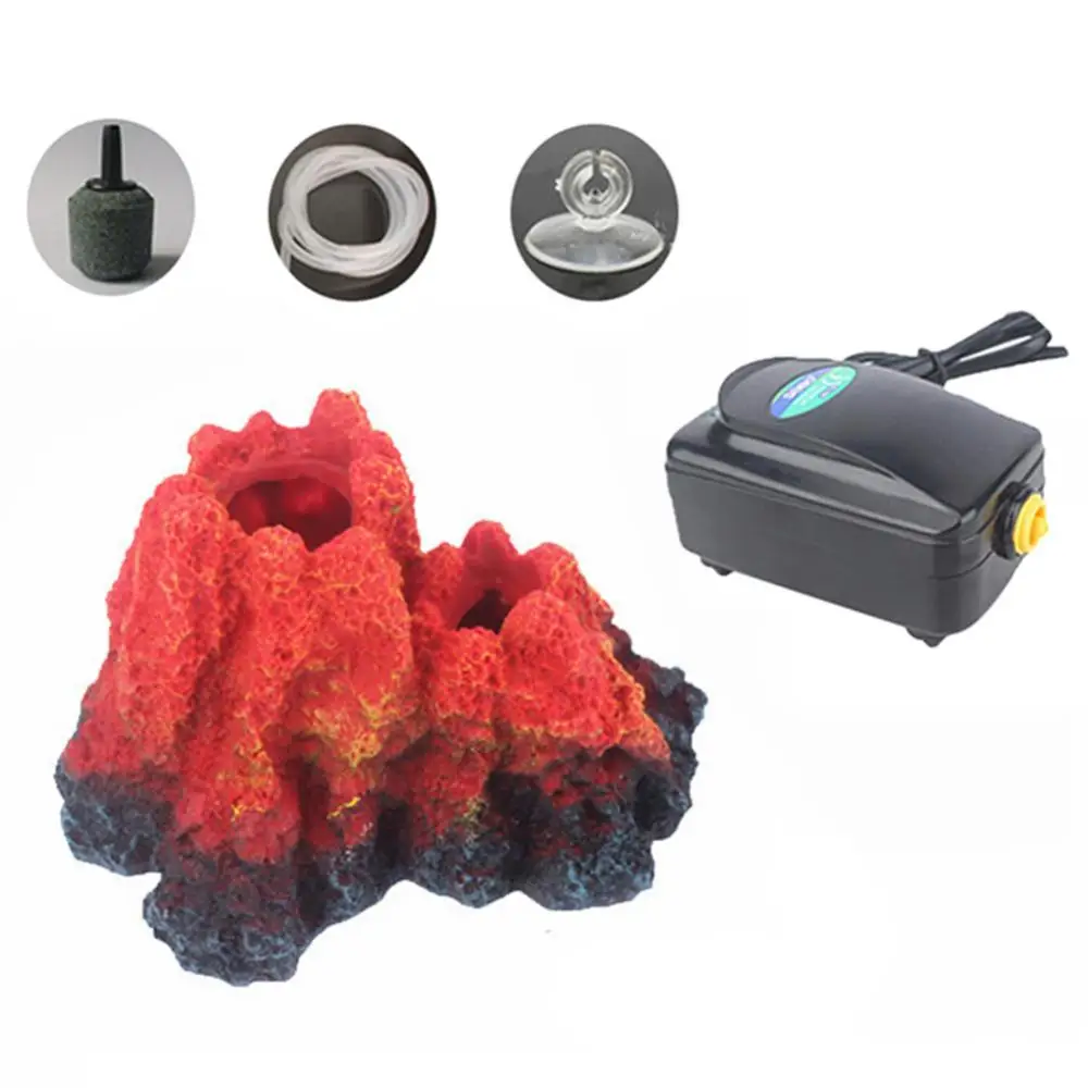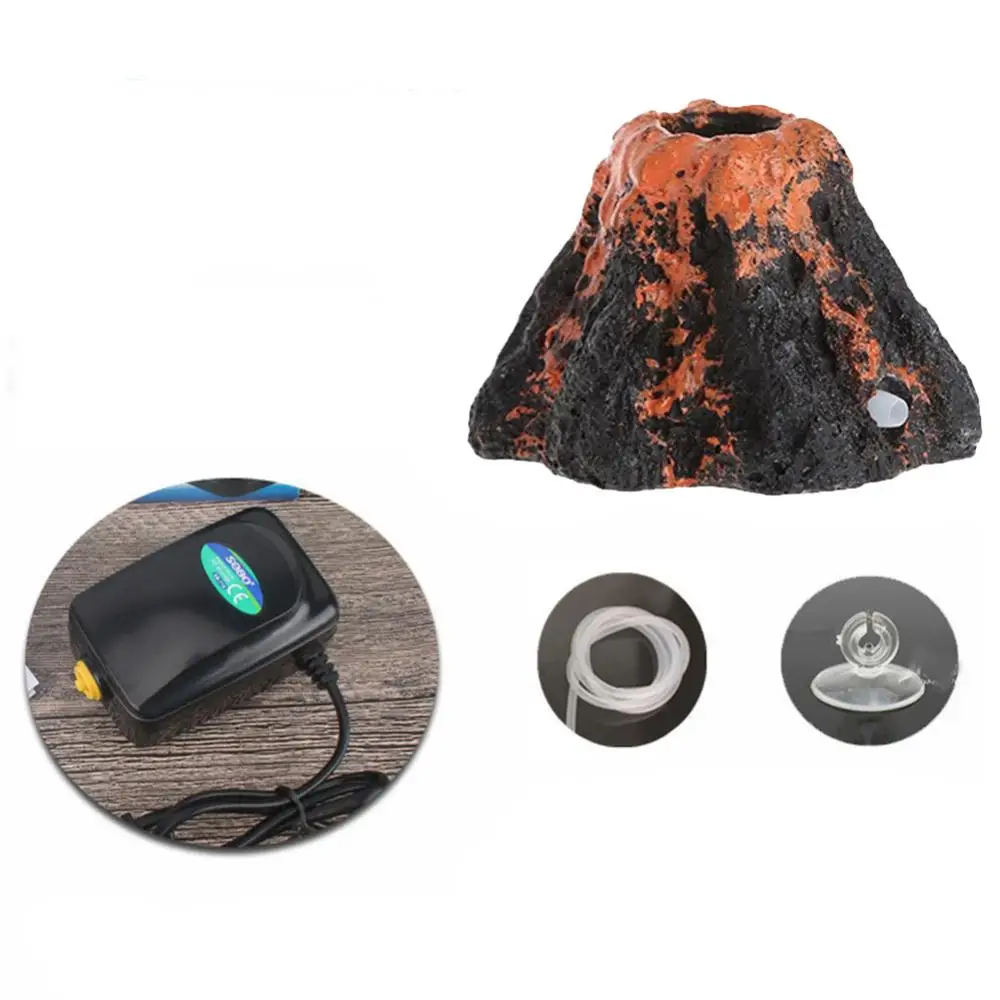 Tanque de peces rojos, forma de volcán, resina, burbuja de aire, piedra, bomba de oxígeno, adorno para acuario, simulación de peces y camarones, decoraciones de refugio