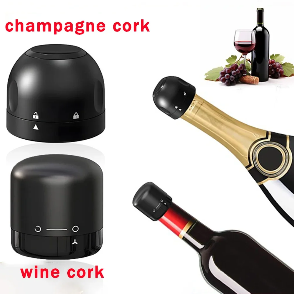 Tapón de champán y vino tinto al vacío, tapón de botella con bloqueo giratorio, tapón de sellado de vino espumoso, herramienta de barra de corcho para vino tinto para el hogar