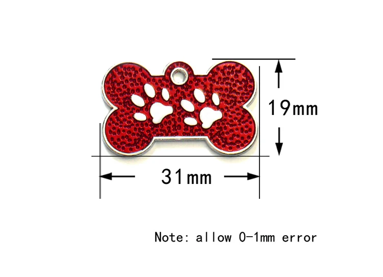New Bone Identity Card 20pcs Personalized Dog ID Tags Supplies Customized Laser Cat Puppy Name Phone Pet ID Tags Dog AccessoriesFeature :You can engrave your pet's name or your phone number on the tags MOQ : 20pcs/lot (You can leave a message , the color and quantity you need.) Size : 31X19MMPendants colors: Like PicturePlease note :1.This is wholesale product , Not counter-offer Please. 2.We Don't offer Engrave Service.