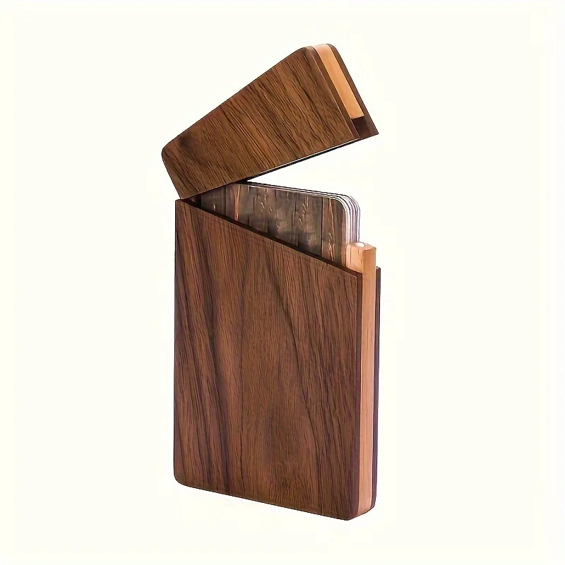 Tarjetero de madera portátil para hombre, tarjetero delgado, accesorios de escritorio ganizer para tarjetas de visita de madera