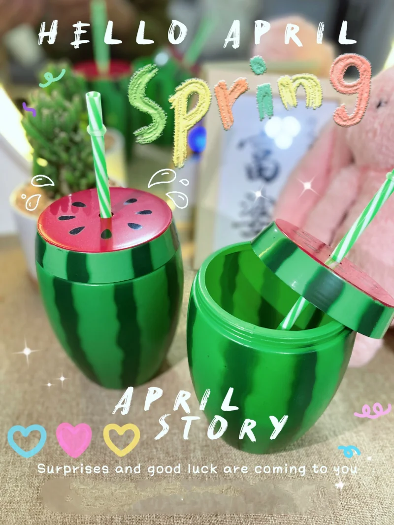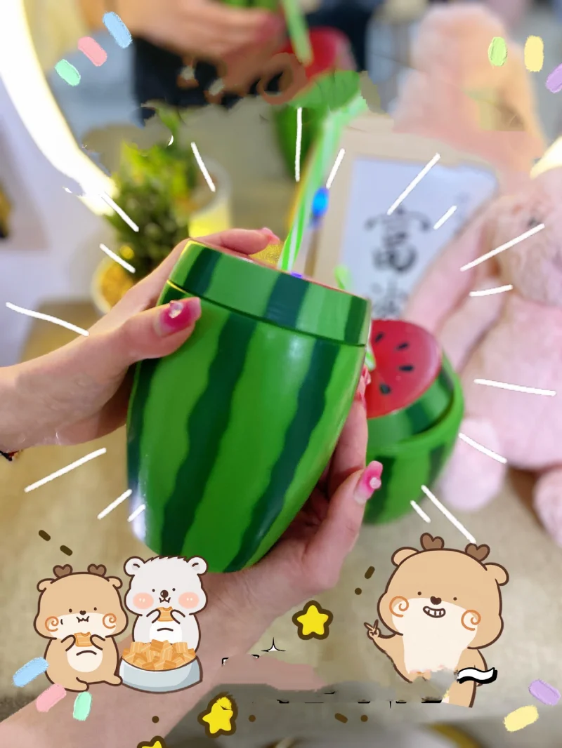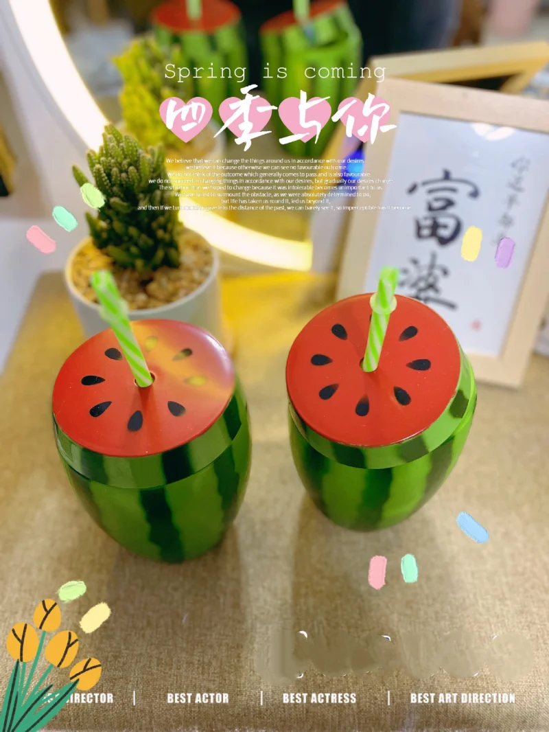 Los vasos para bebidas con un adorable diseño en forma de sandía son fáciles de usar y limpiar.