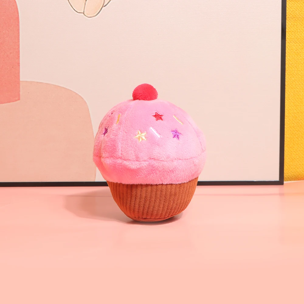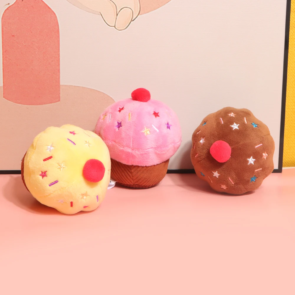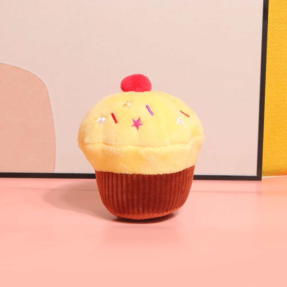 Taza de pastel, juguete de perro de peluche chirriante para regalo de cumpleaños de mascotas, magdalenas de cumpleaños, relleno suave y bonito, juguete para apretar Squishi