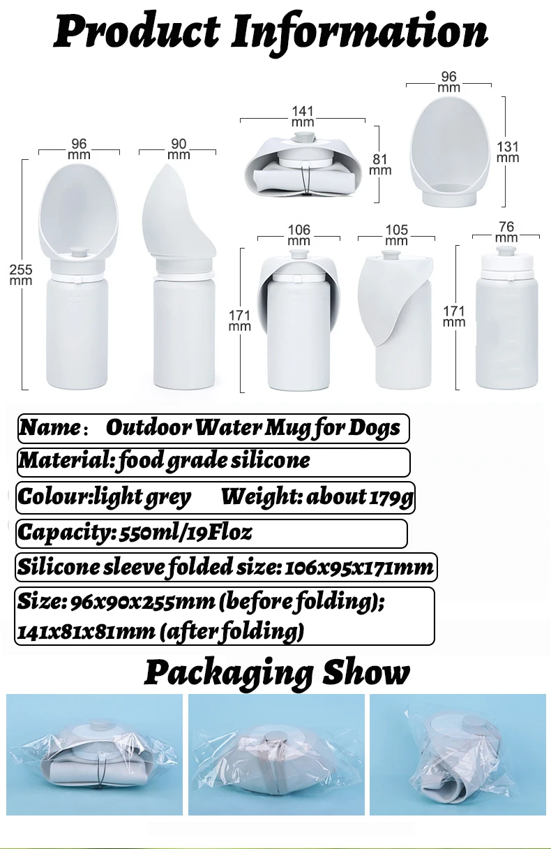 🐕 No desperdicio de agua: coloque la taza en posición vertical para reciclar el agua.🐶 Silicona suave, almacenamiento plegable, más ahorro de espacio(1.Gire la funda de silicona hacia abajo;2.Doble la botella de agua de abajo hacia arriba;3.Ate la botella de agua con una cuerda).