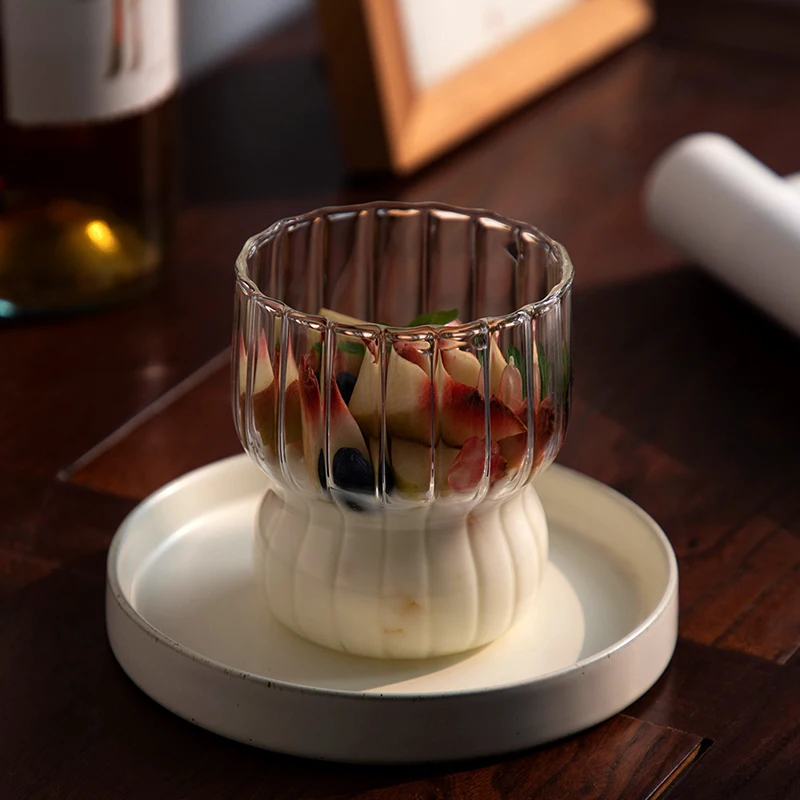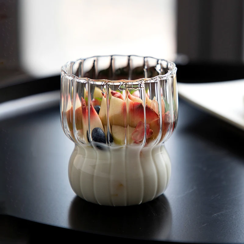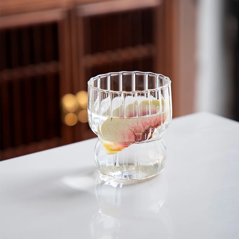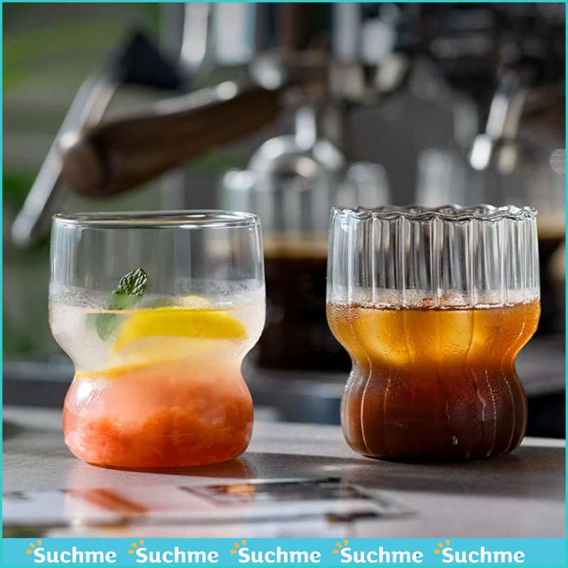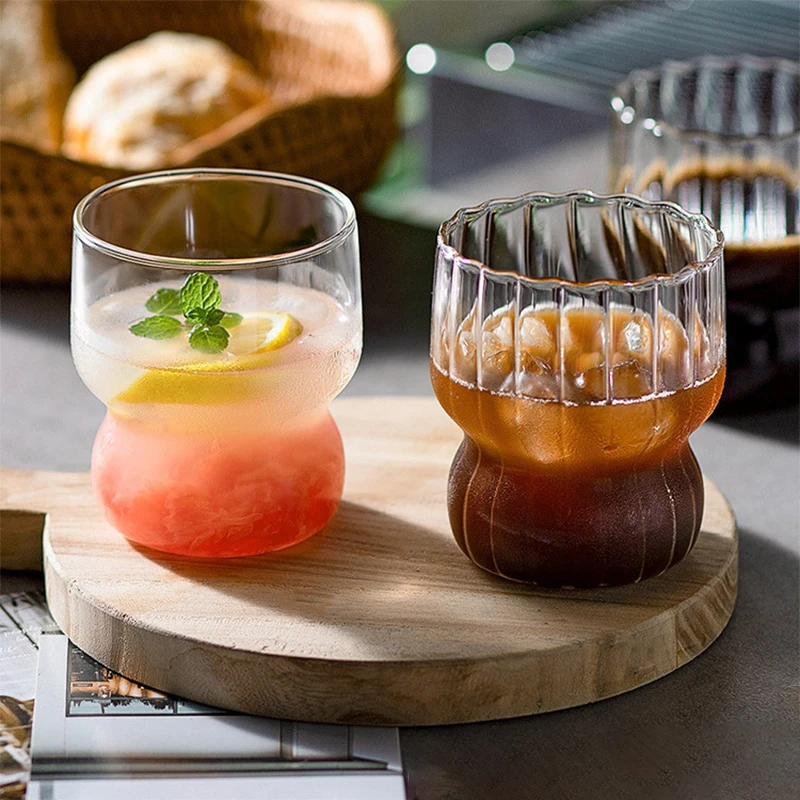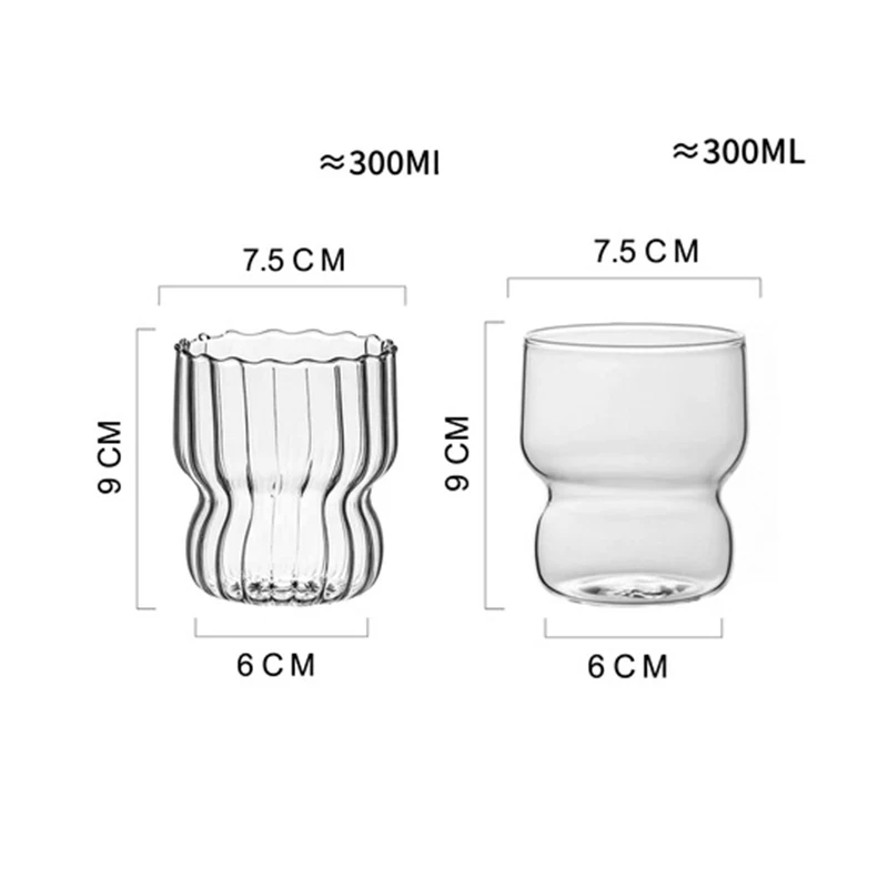 Taza de vidrio transparente de 300ml, vaso de café helado con forma de onda creativa, taza de jugo, leche, té, vasos de agua