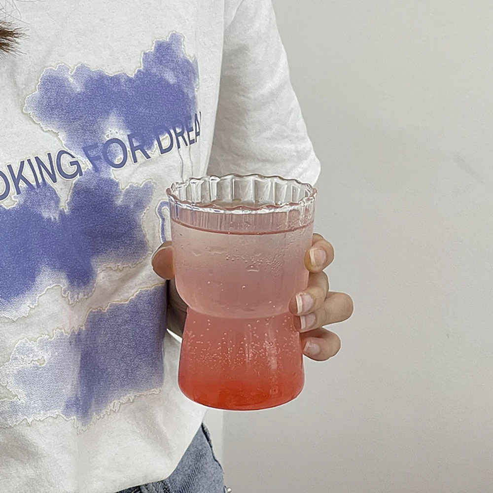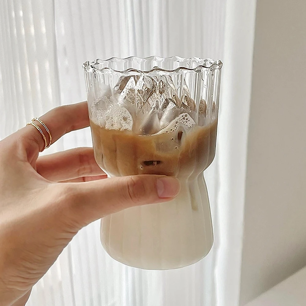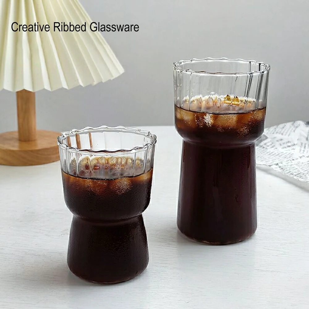 2. Las copas de gafas transparentes presentan un exquisito diseño en forma de onda, cómodo de sostener en la mano. Perfecto para adornar la decoración de su hogar y servir una bebida fría con estilo. Es fácil de combinar con cualquier decoración de Mesa del hogar o estación de cafetería.