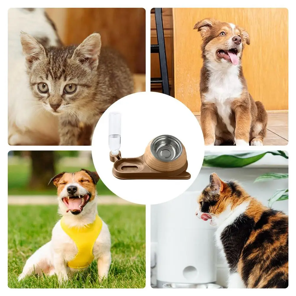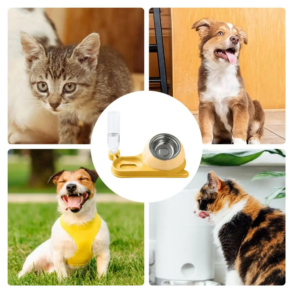 Este plato de alimentación para gatos con botella de agua está hecho de PP de alta calidad y material de acero inoxidable. Diseñado para satisfacer los hábitos alimenticios de su mascota y proporcionarle agua en todo momento para saciar su sed.