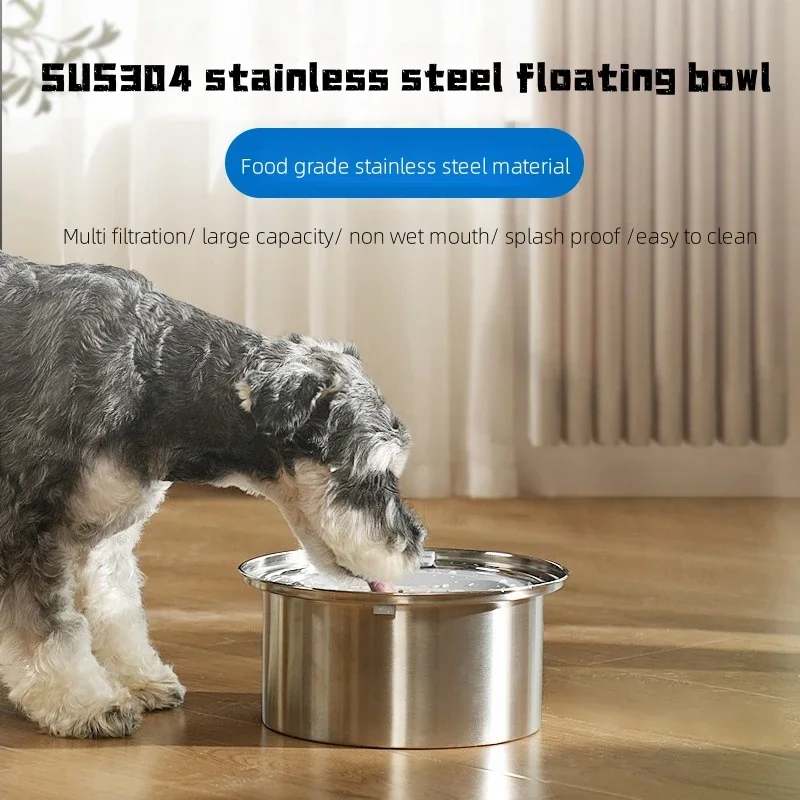 Tazón flotante de acero inoxidable para mascotas, dispensador de agua portátil, bebedero de agua, suministros para perros y gatos, 2L y 3L