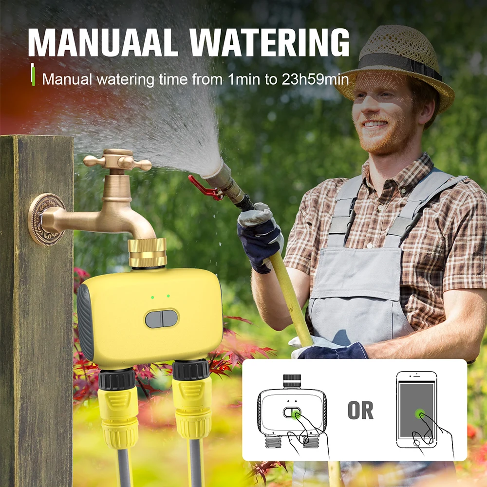 Tuya WiFi temporizador de agua inteligente 2 salidas riego Syatem controlador de riego automático aspersor cronometrado para jardín césped