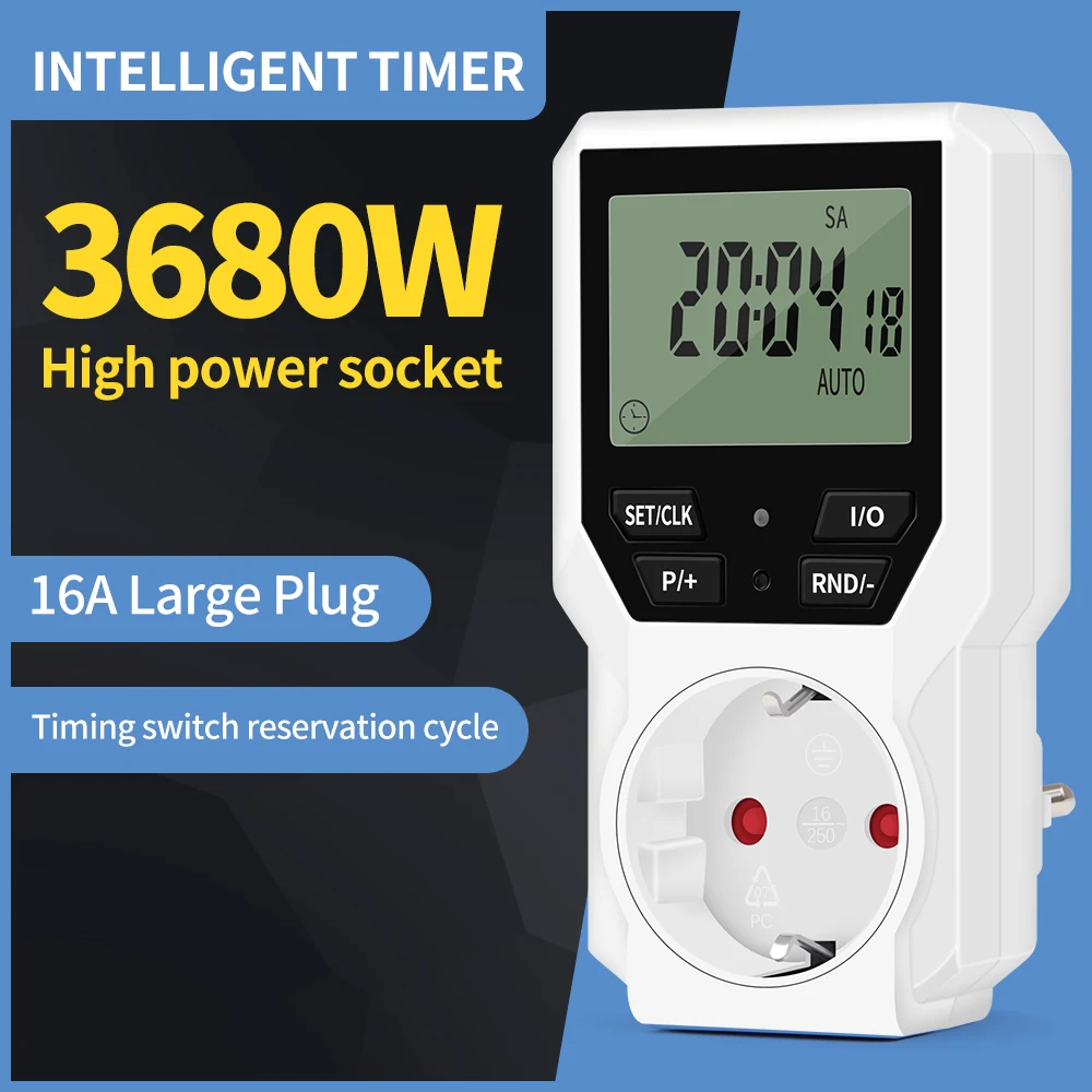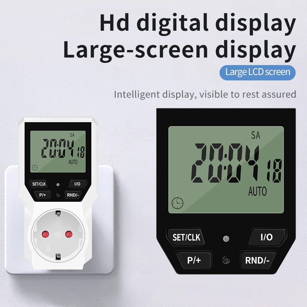 Interruptor de temporizador electrónico Digital, enchufe europeo, pantalla LCD, temporizador programable, 10 temporizadores de grupo, Protector automático contra sobretensiones