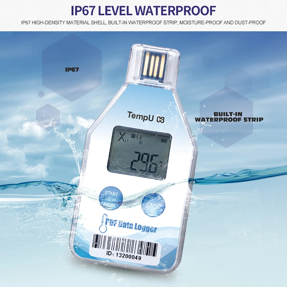 TempU08B Registrador de datos de temperatura y humedad IP67 Registrador de temperatura USB a prueba de agua 32000 Juegos Registrador de datos para almacenamiento en almacén