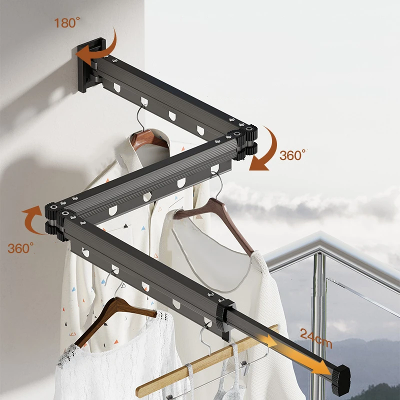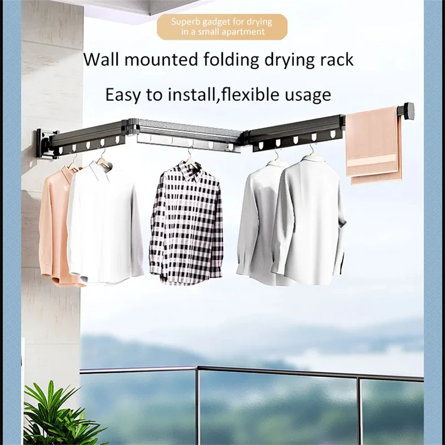 Estante de secado de ropa para el hogar, estante de secado plegable para montaje en pared, balcón, dormitorio, toallas de aleación de aluminio, colgador de lavandería, ahorro de espacio