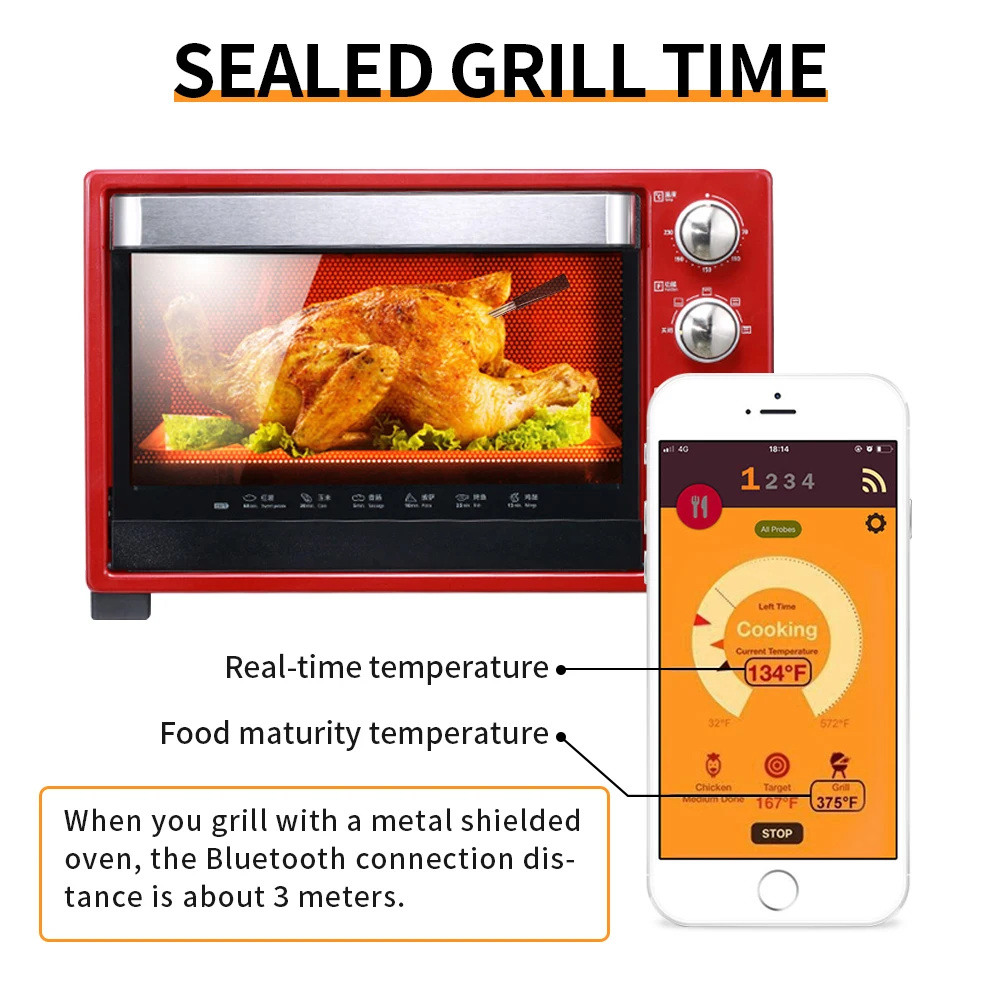 Termómetro de carne con sonda inalámbrica para horno, parrilla, barbacoa, bistec, cocina, cocina, termómetro Digital inteligente con Bluetooth, accesorios