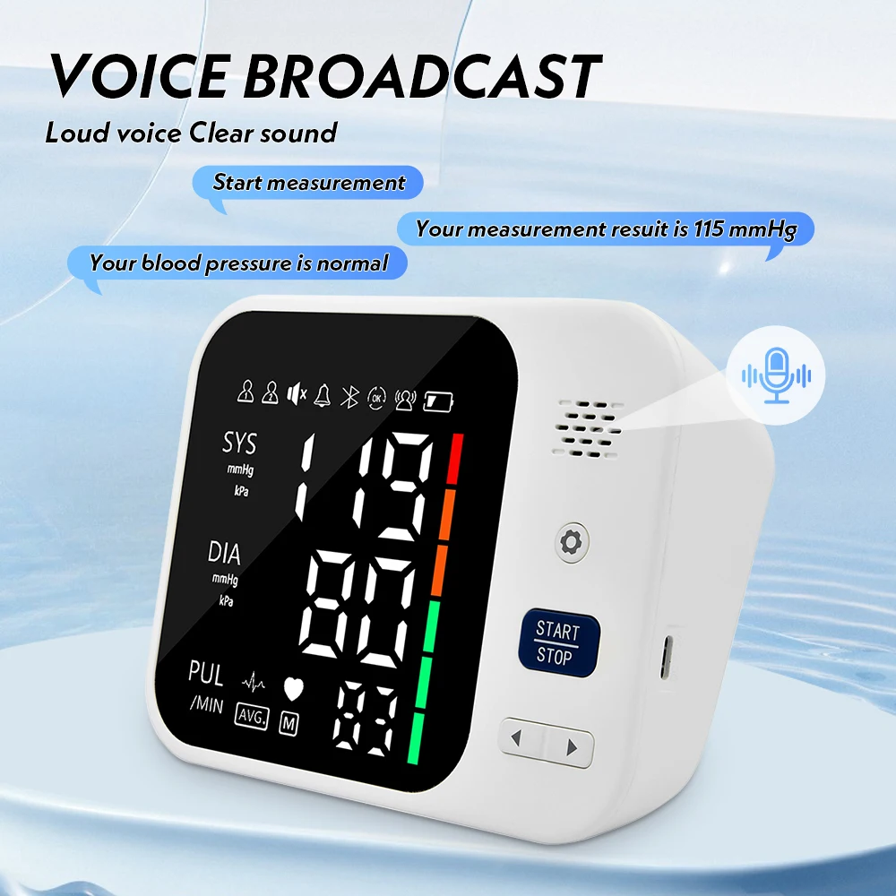 Este Monitor de presión arterial está diseñado de forma inteligente para una lectura fácil y clara, el manguito de presión arterial está equipado con una gran pantalla LCD para lecturas más precisas en 45 segundos. El Monitor automático de presión arterial tiene tecnología de medición avanzada para proporcionarle las lecturas más precisas. Conveniente para realizar un seguimiento de su salud diaria.