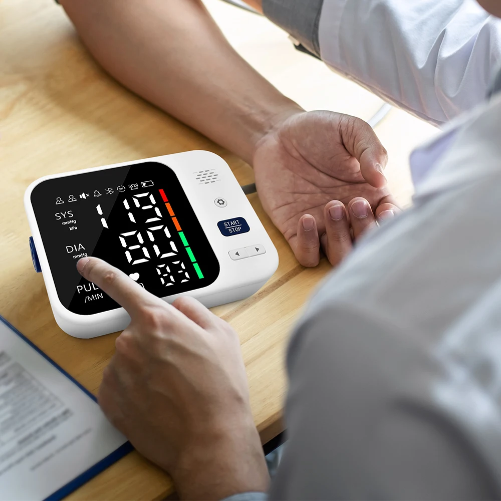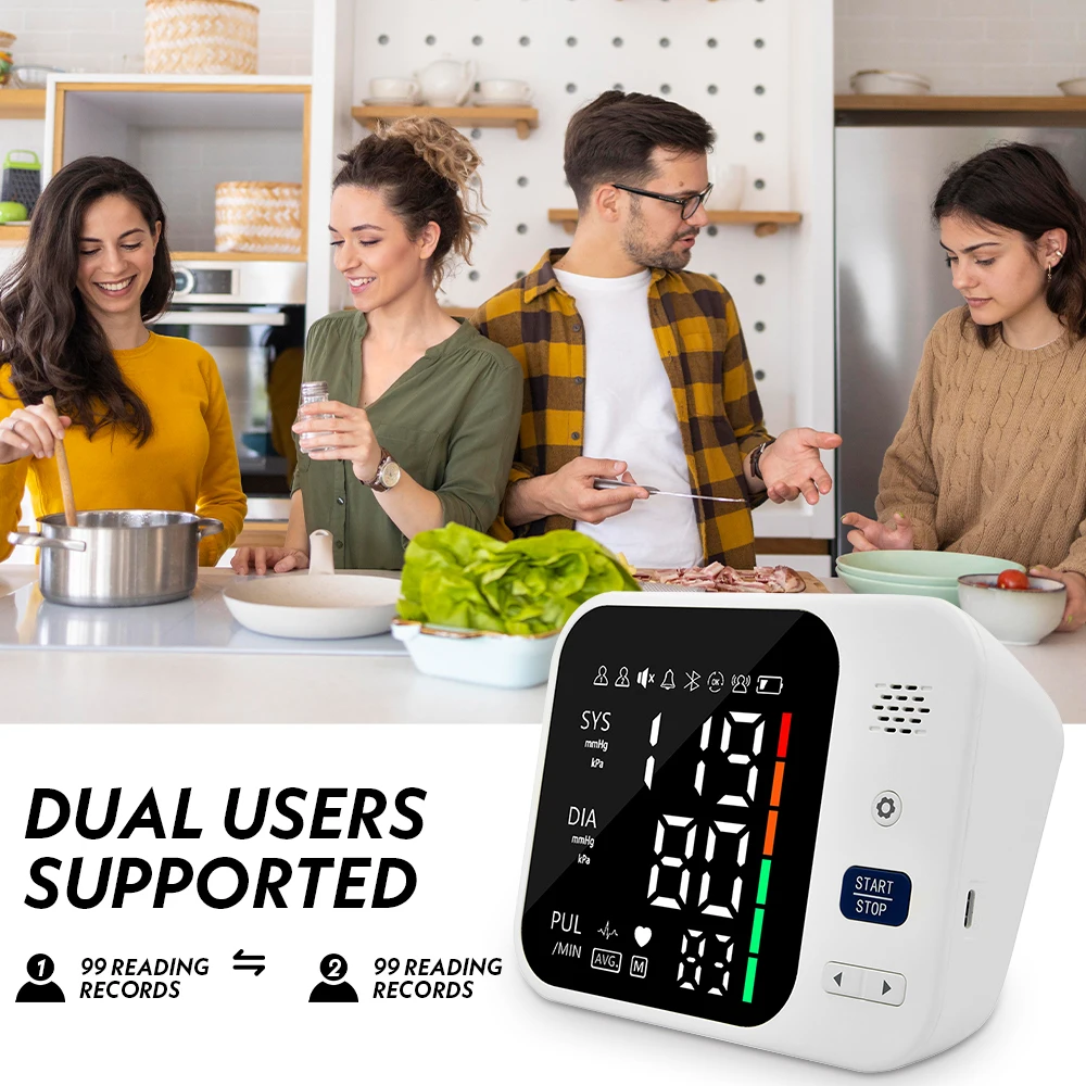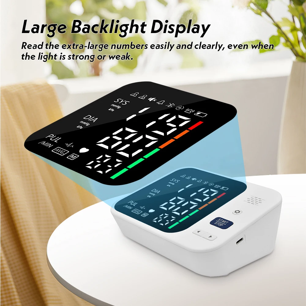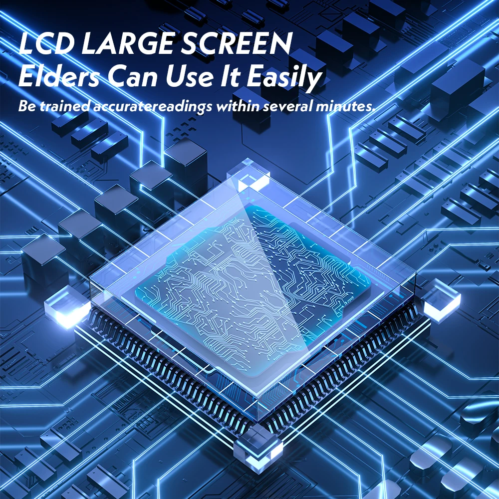 Pantalla LCD: Diseñado inteligentemente para una lectura fácil y clara, el manguito de presión arterial está equipado con una gran pantalla LCD para lecturas más precisas en 45 segundos.